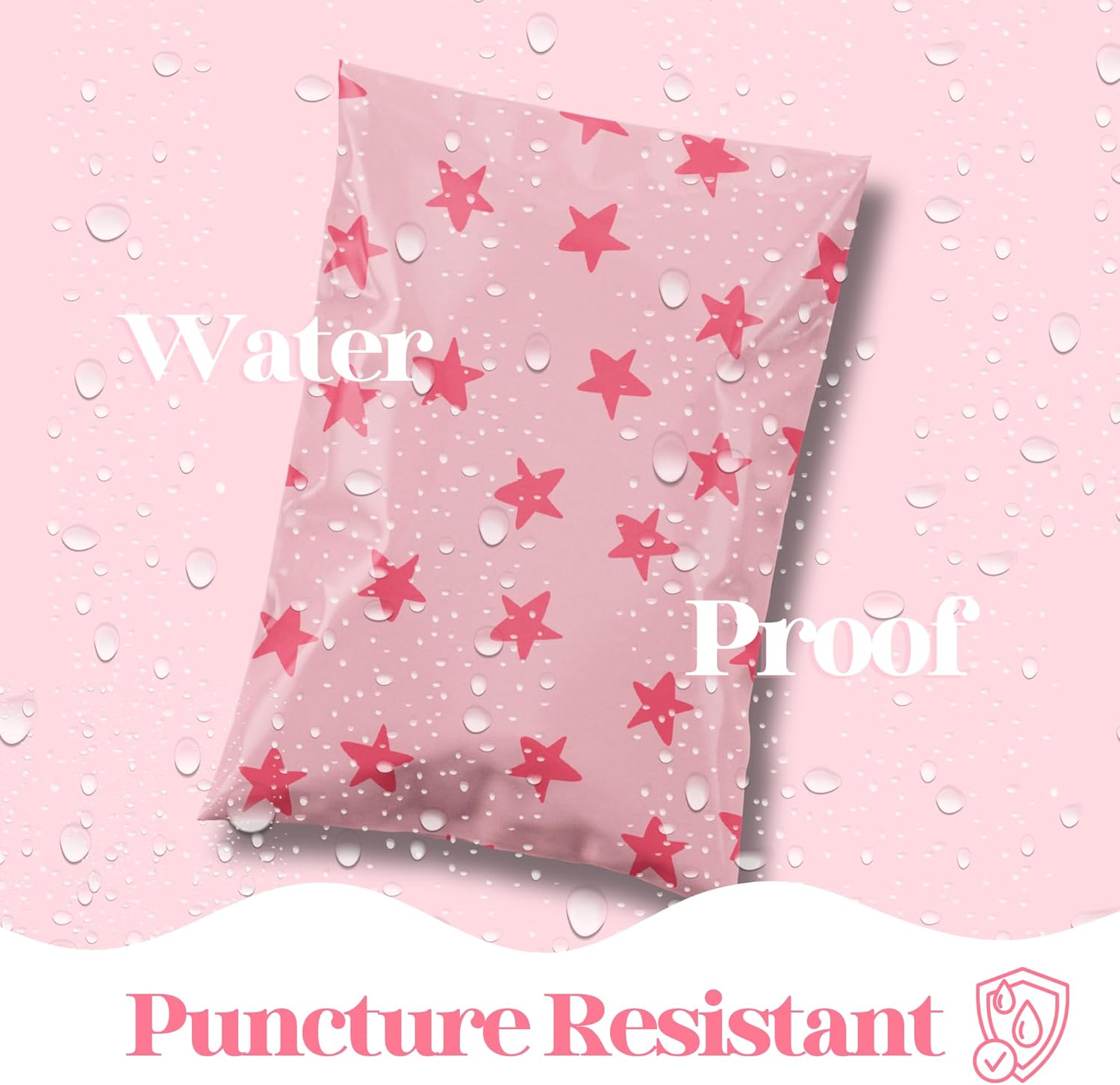 10x13 Designer Poly Mailer 100 Pack Heavy Duty Waterproof Self Seal Shipping Bags for Small Business Large Mailing Envelopes Bulk Tear Resistant Cute Packaging Seeing Stars Pink