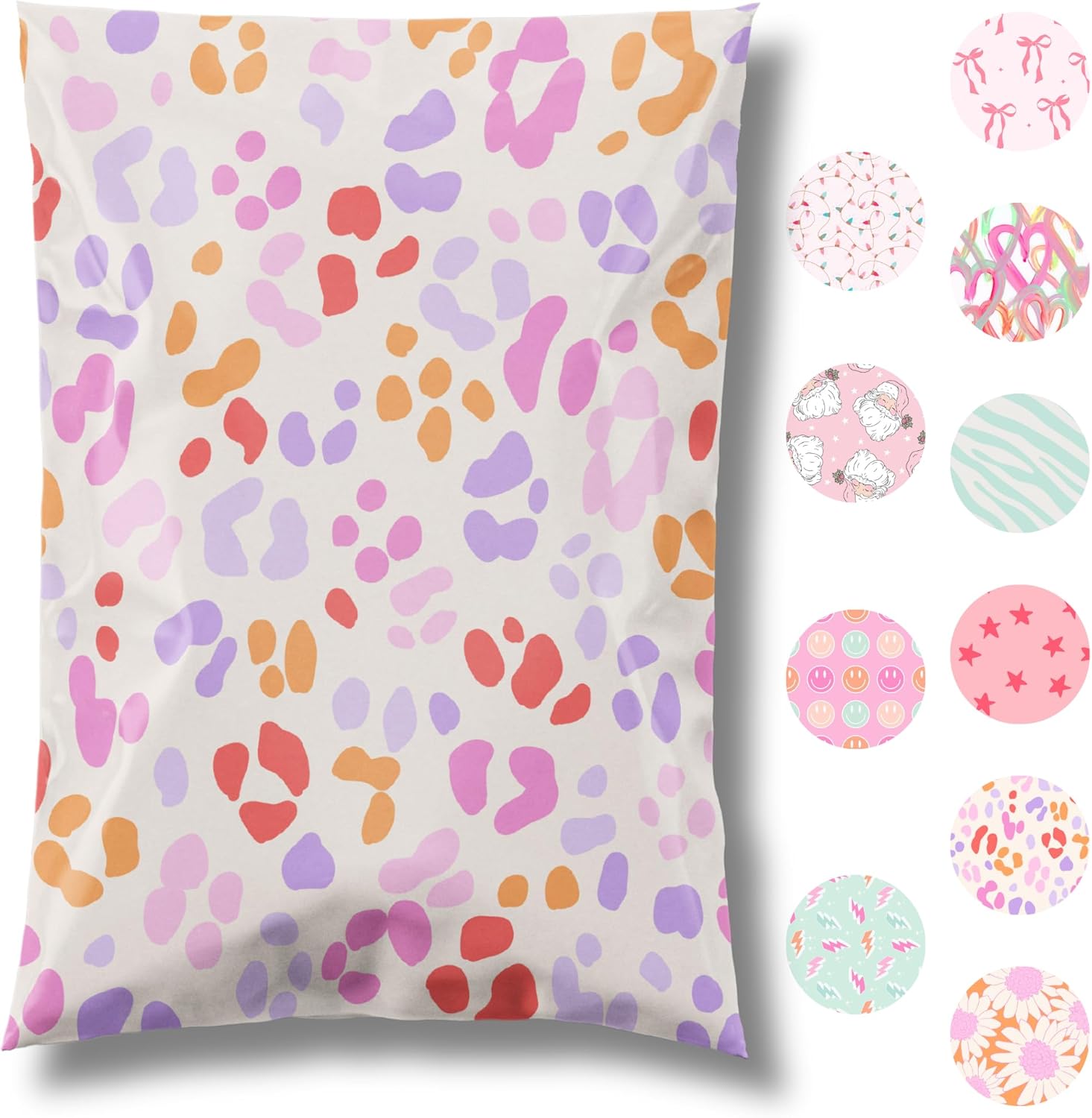 10x13 Designer Poly Mailer 100 Pack Heavy Duty Waterproof Self Seal Shipping Bags for Small Business Large Mailing Envelopes Bulk Tear Resistant Cute Packaging Preppy Leopard