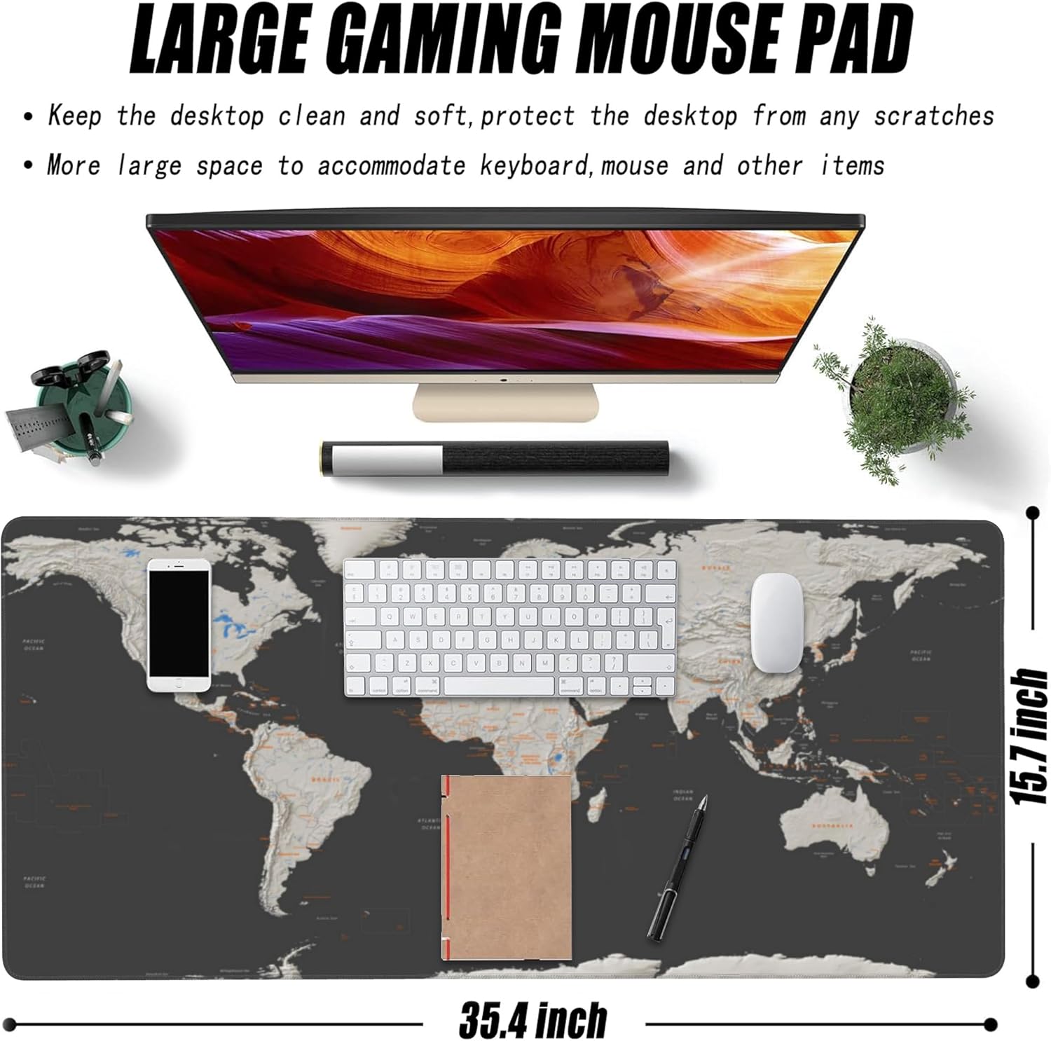 Desk Mat, Vintage World Map Extended Large Gaming Mouse Pad XXL, Non-Slip Rubber Base Stitched Edges Long Computer Keyboard Desk Pad Mouse Mat for Home Office Gaming 35.4"X15.7"