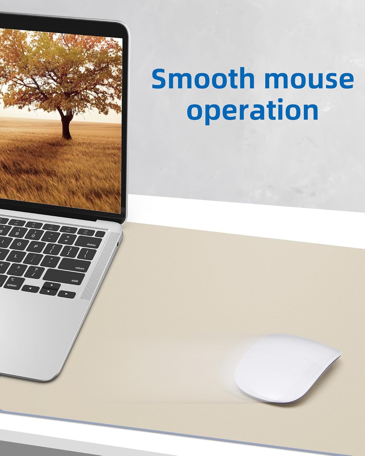 AFIING Leather Desk Pad Protector,Mouse Pad,Office Desk Mat, Non-Slip PU Leather Desk Blotter,Large Desk mat,Waterproof Keyboard mat for Office/Home/Decor (Beige,35"" x 17"")