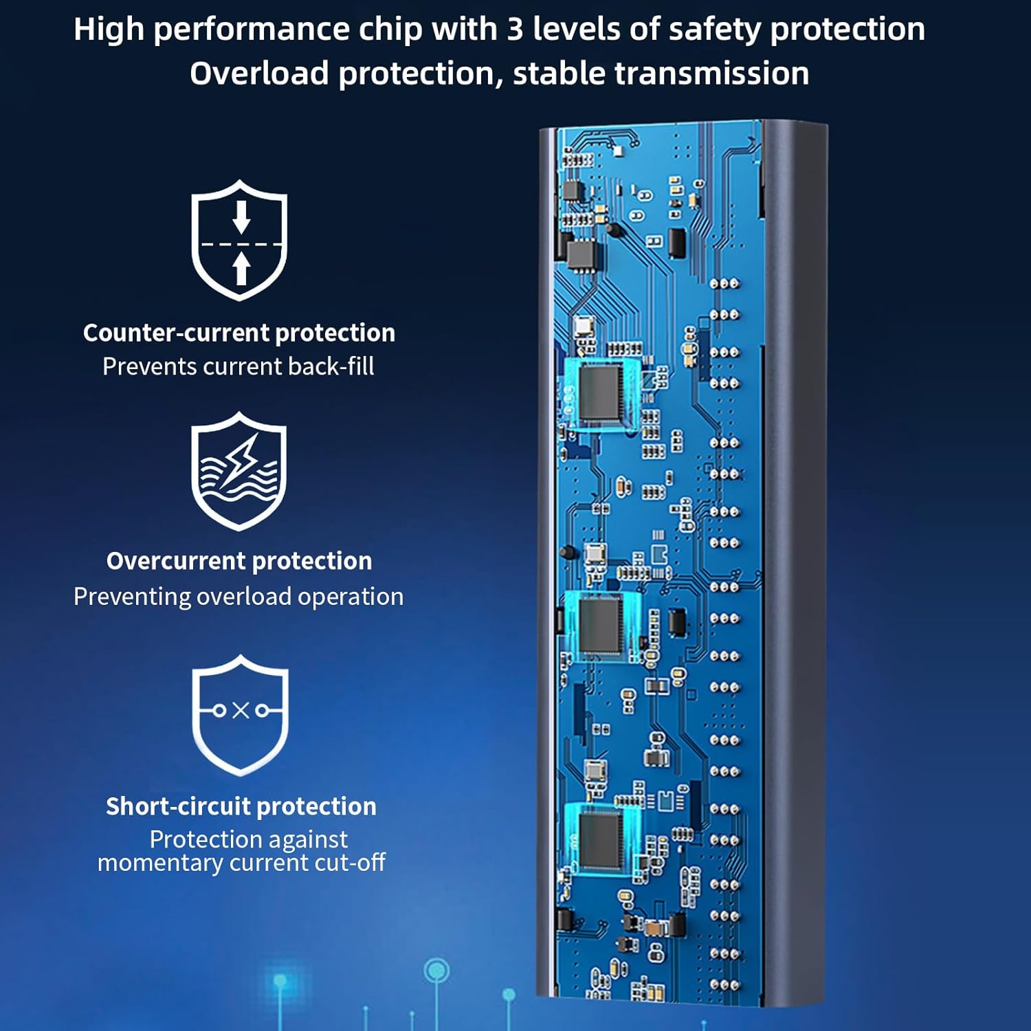 - 【Aluminum alloy and Blue LED Indicator Light】 USB hub of the power adapter is made of aluminum alloy. 10-port USB 3.0 features blue LED indicator lights and independent switches. When data is transmitted, the blue LED indicator light flashes. When the power is restored, the port will remain in the previously set state.