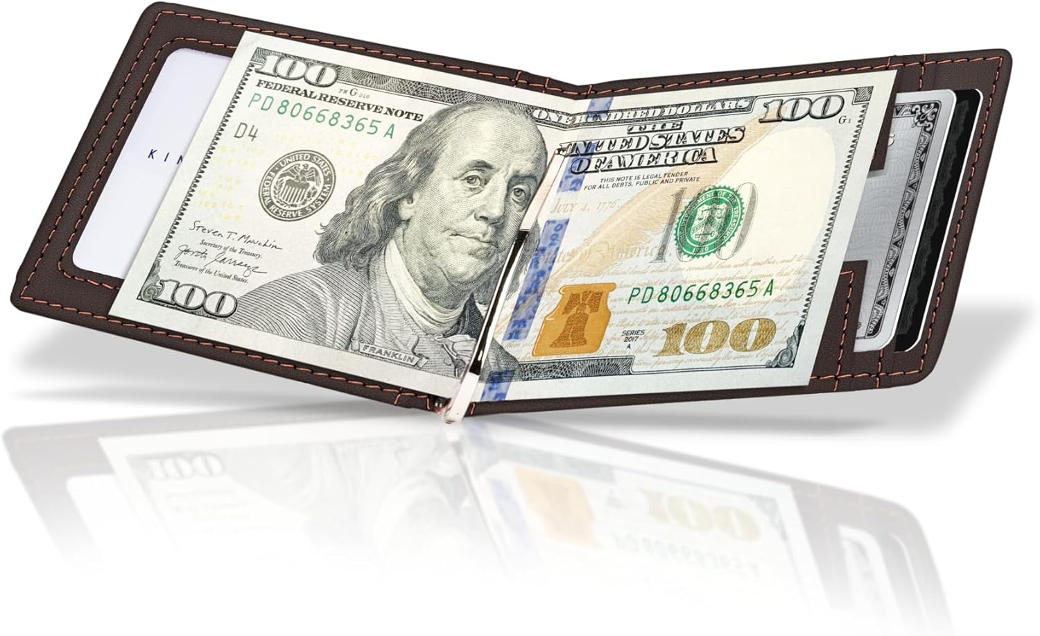 Kings Loot Money Clip Slim Minimalist Wallet for Men – RFID Blocking Leather Design with Money Clip – Front Pocket Bifold Holds 12 Cards – Stylish & Compact Wallets (Truffle)