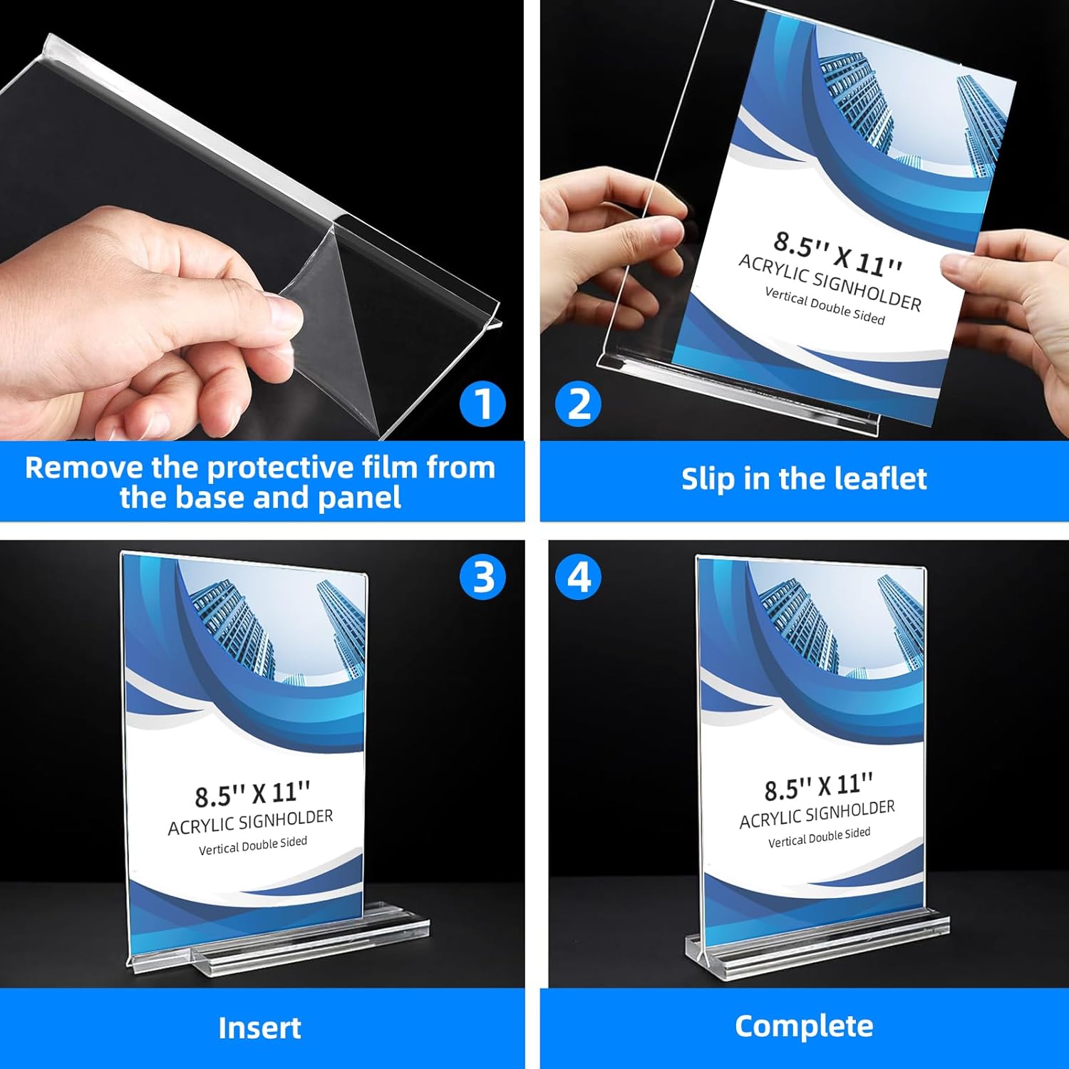 - Premium Quality Acrylic Sign Holder 8.5 x 11'': Made from crystal clear acrylic sheets for exceptional clarity and durability, providing pristine visibility for your signage.