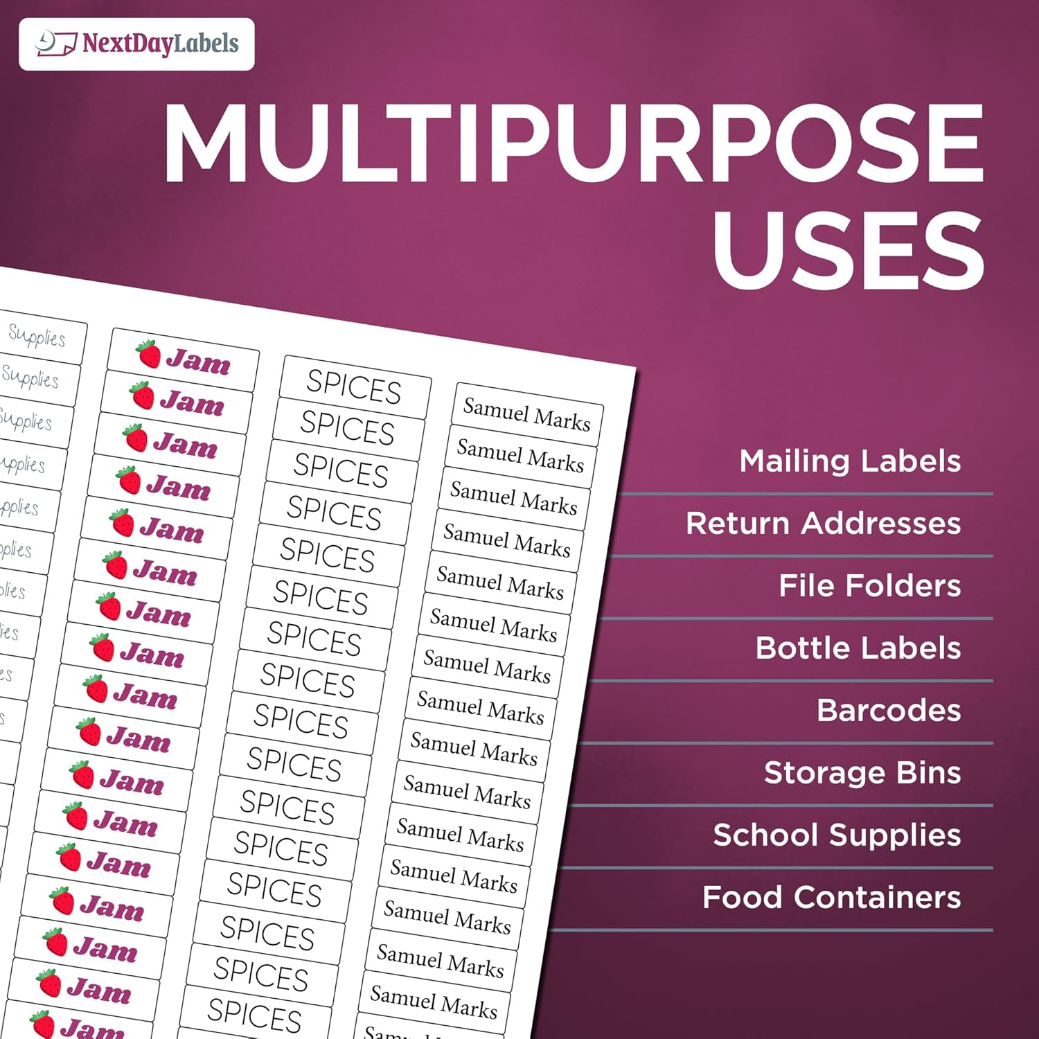 NextDayLabels – 1-3/4" x 1/2" Rectangular Sticker Labels for Printer - White Laser/Inkjet Printer Labels Return Address Labels Shipping Label Stickers (100 Sheets, 80 Per Sheet, 8000 Labels)