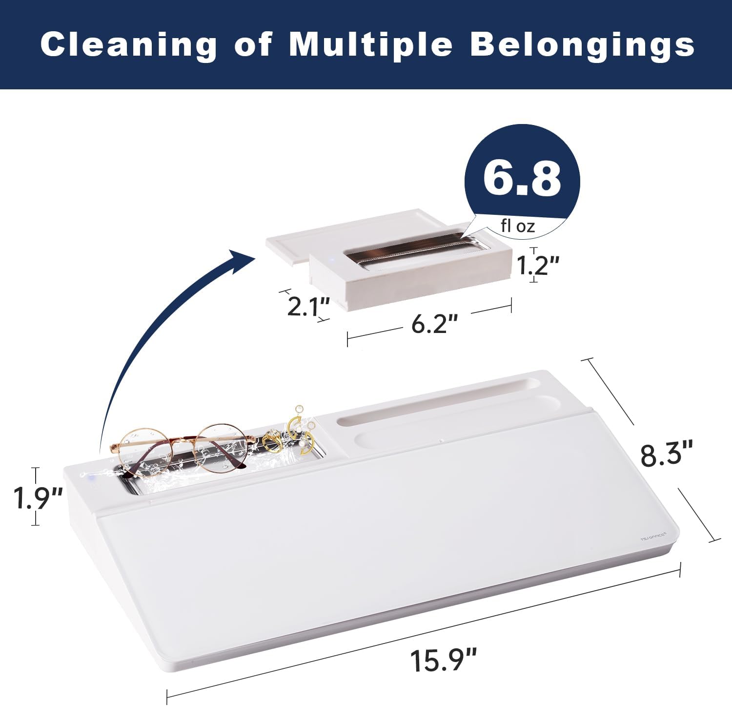 Small Glass Desktop Whiteboard Dry-Erase-Board - Computer Keyboard Stand with Ultrasonic Cleaners White Board Surface Pad with Drawer, Desk Organizers with Accessories