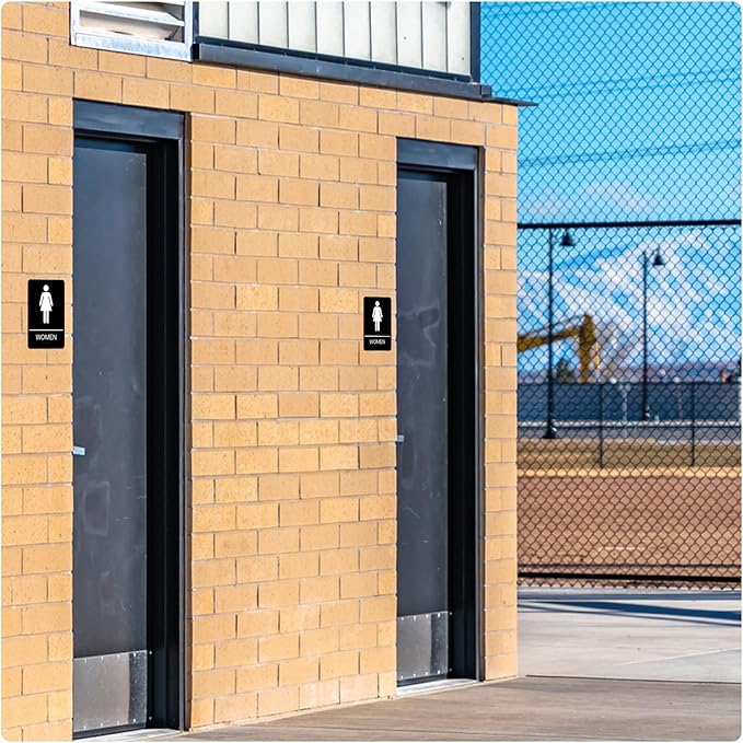 - EASY INSTALLATION: Just put the restroom sign where you want it to. To make sure it will adhere easily and firmly to any kind of surface, such as a wall or door, remove the adhesive cover and position it in line with the tape on the back.