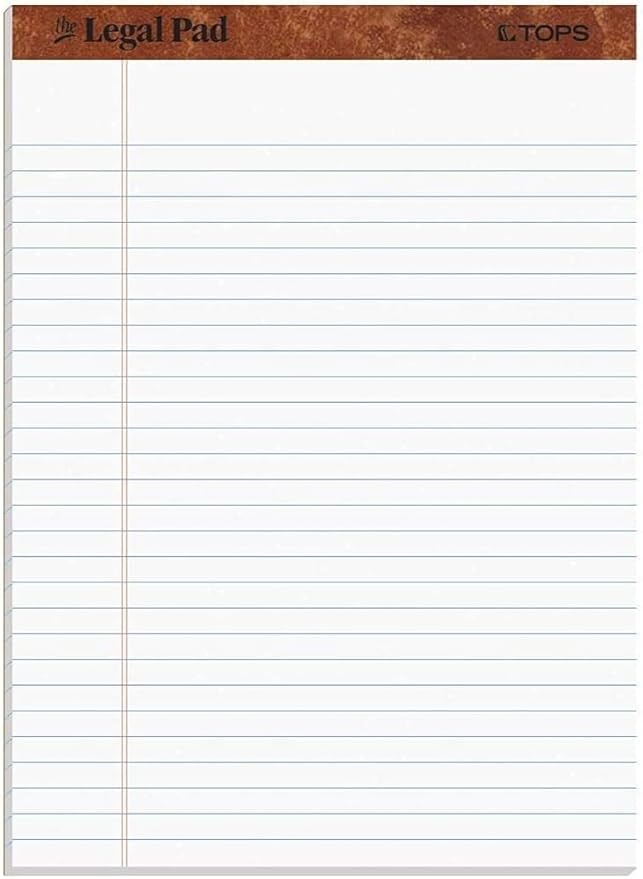Tops 8.5x11 Legal Pads,3 Pack, The Legal Pad Brand, Wide Ruled, White Paper, 50 Sheets per Writing Pad, Made in the USA