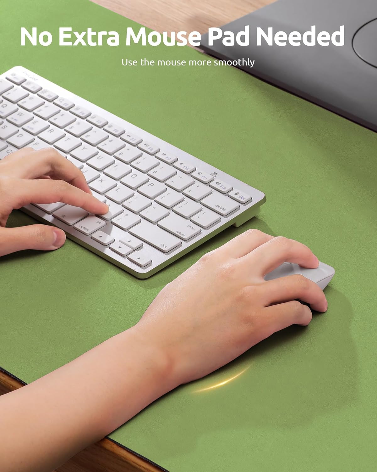 YSAGi Leather Desk Protector, Office Mat, Large Mouse Mat, Non-Slip PU Leather Blotter, Laptop Desk Pad, Waterproof Writing Pad for Office and Home (Leaf Green, 35.4" x 17")
