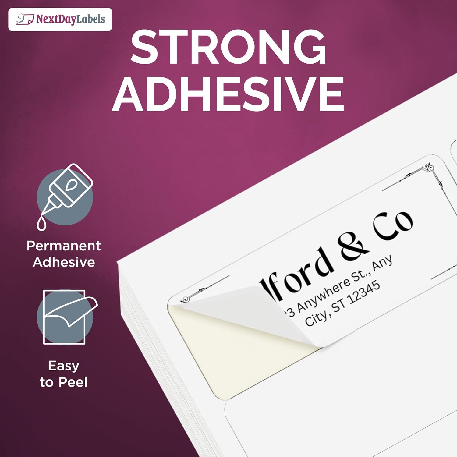 - STRONG PERMANENT ADHESIVE - Bright matte white labels stickers with a strong permanent adhesive so they attach firmly to boxes, pallets, cardboard, envelopes, paper, glass, plastic, metal, tin, and more. Will work with all Laser, Inkjet, Copy Machines, and Offset Printers.