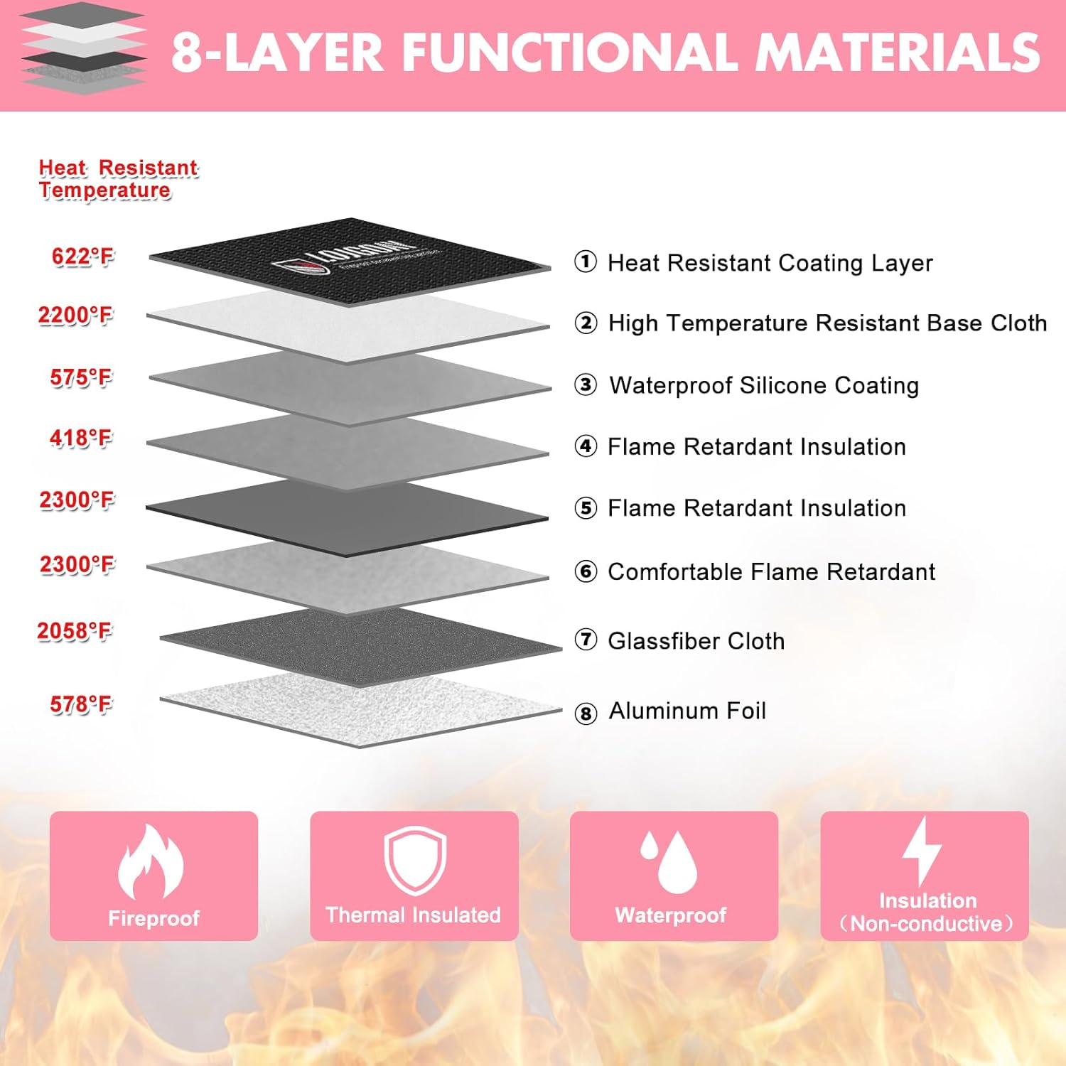 - Material : Non-itchy silicone coated fiberglass+Heat-insulating fiberglass+Fiberglass-Reinforced Aluminum Foil