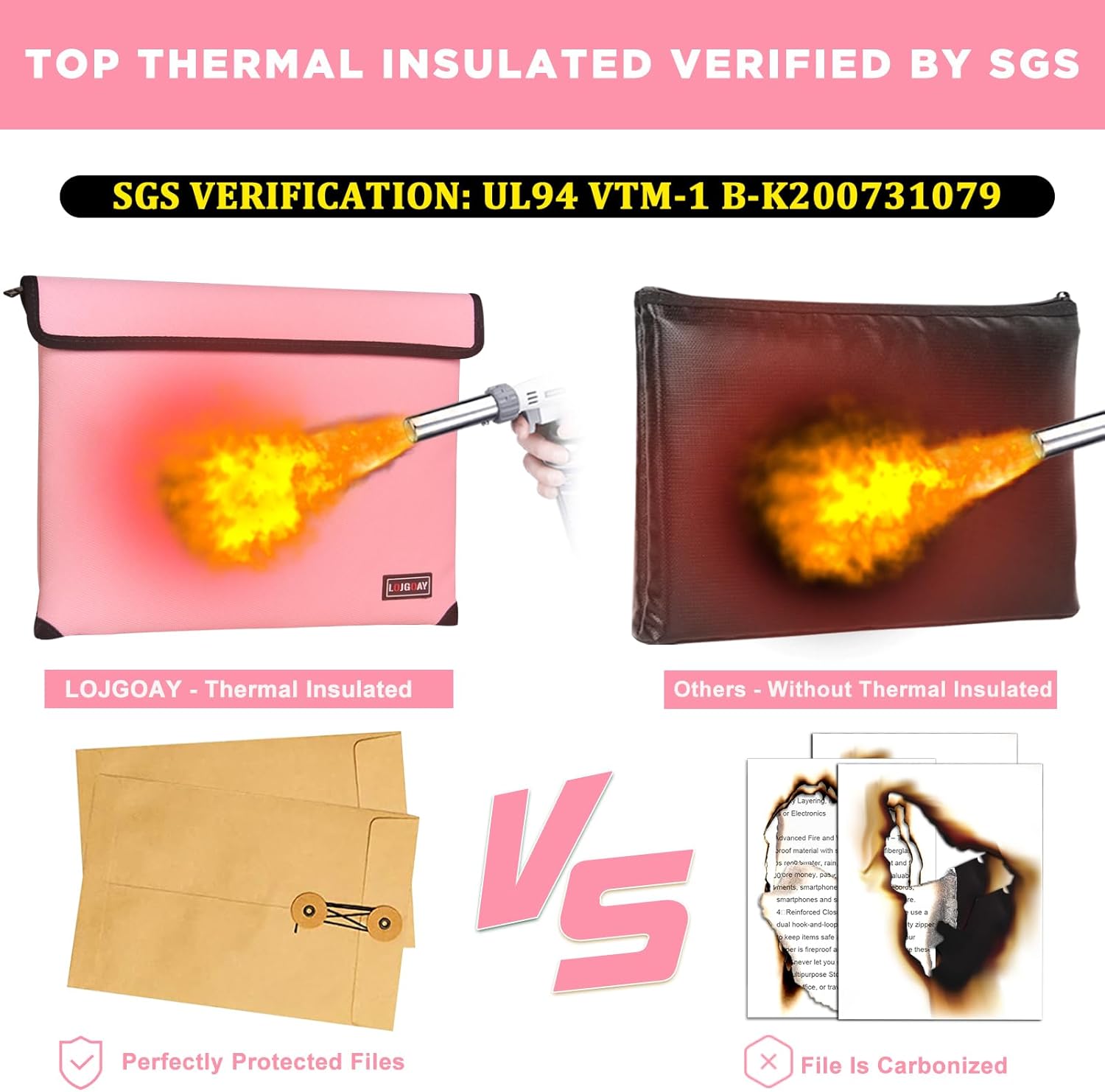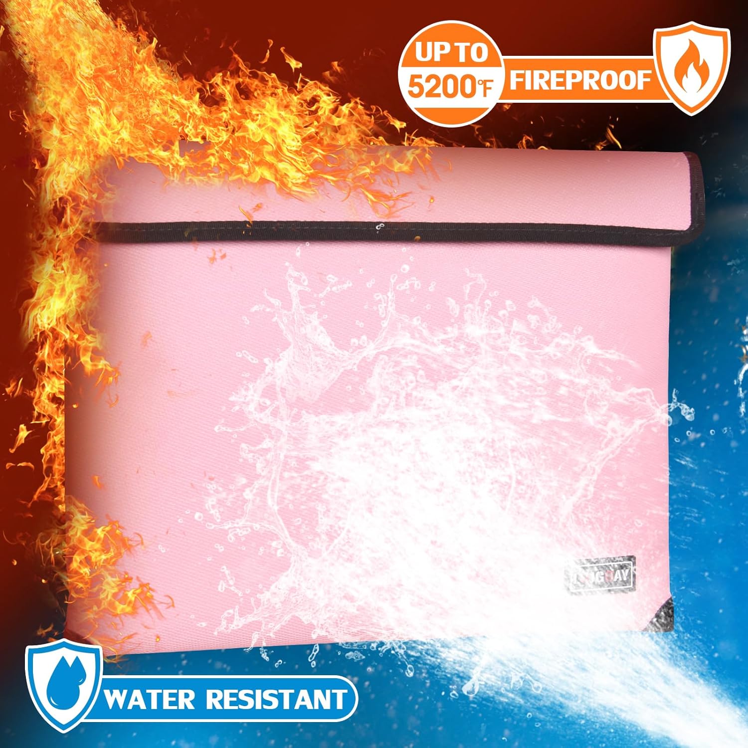 - 🔥TRUSTED FIRE PROTECTION : The fireproof waterproof document bag has passed Global Flammability Standards (US labs) and Vertical Combustion Testing (SGS UL94 V-1). Fireproof money bag can withstand ultra high temperatures up to 5200°F