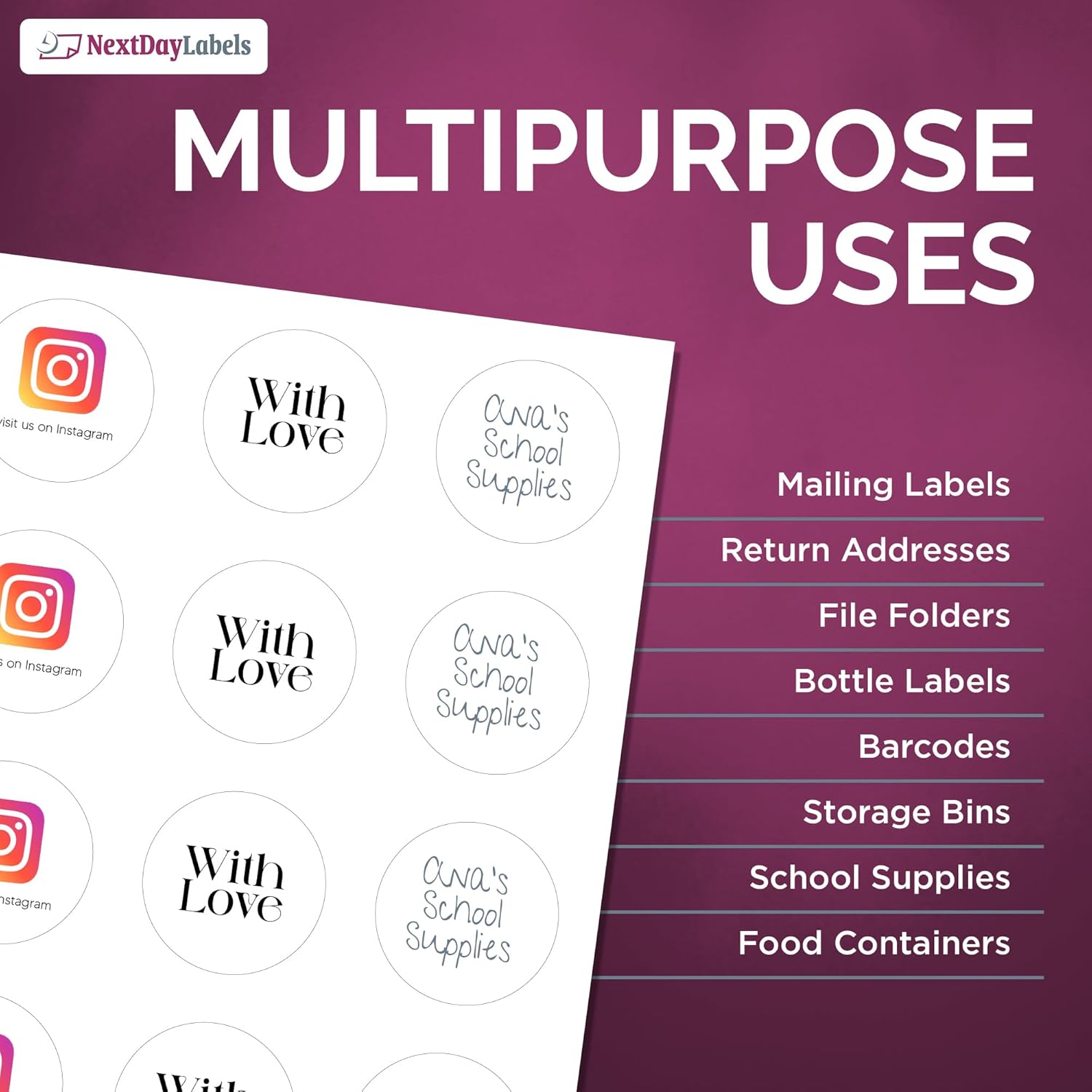 - 2-INCH CIRCLE FOR BLEEDS STICKER LABELS – 2" diameter circle labels sticker sheets for printing. Ideal for crafting, product labeling, inventory management, pricing tags, name tags, envelope seals, organizing, decorating, and to print your own stickers with custom designs.