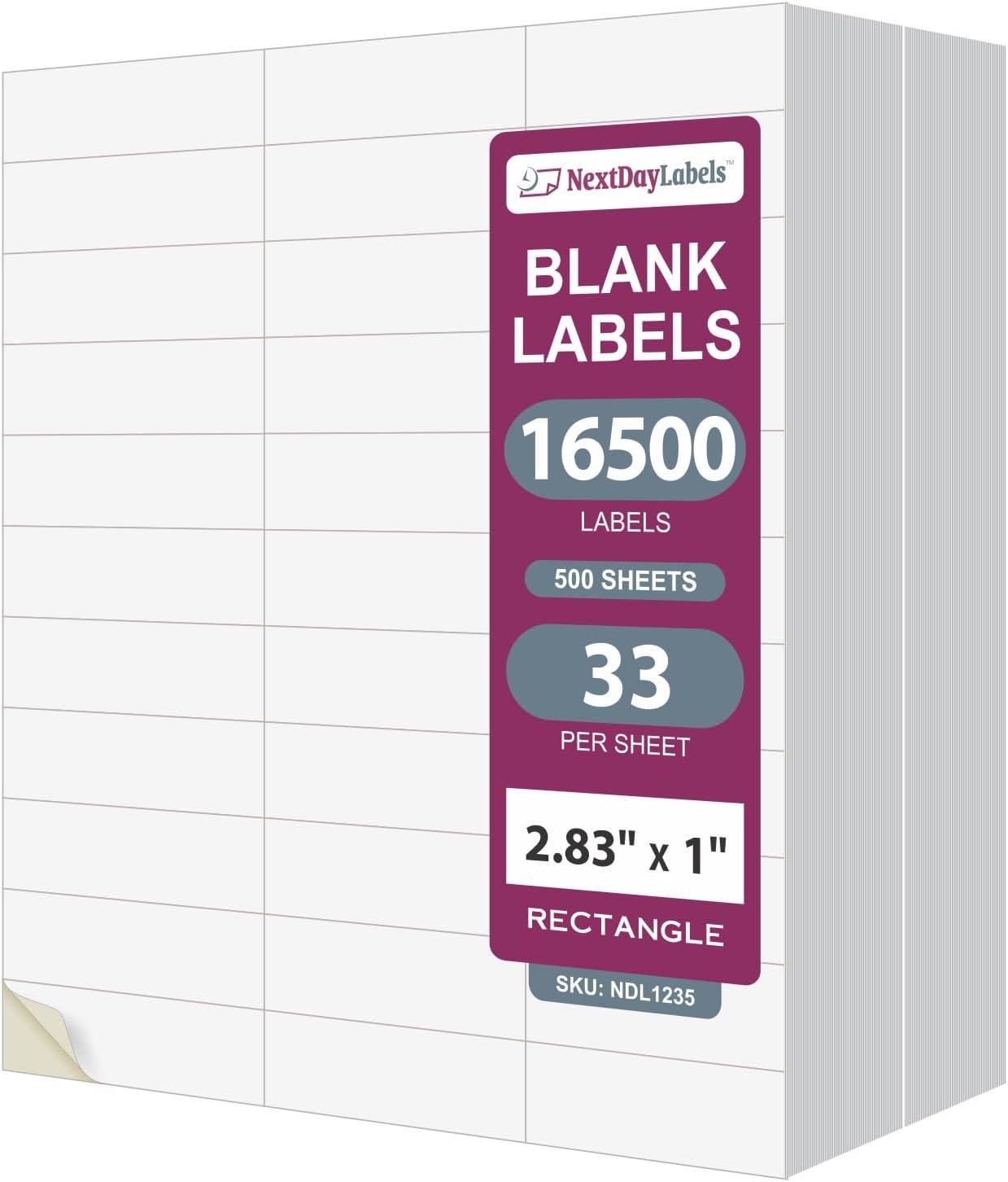 NextDayLabels - 2.83" x 1" Rectangular Sticker Labels for Printer - White Laser/Inkjet Printer Labels Return Address Labels Shipping Label Stickers (500 Sheets, 33 Per Sheet, 16500 Labels)