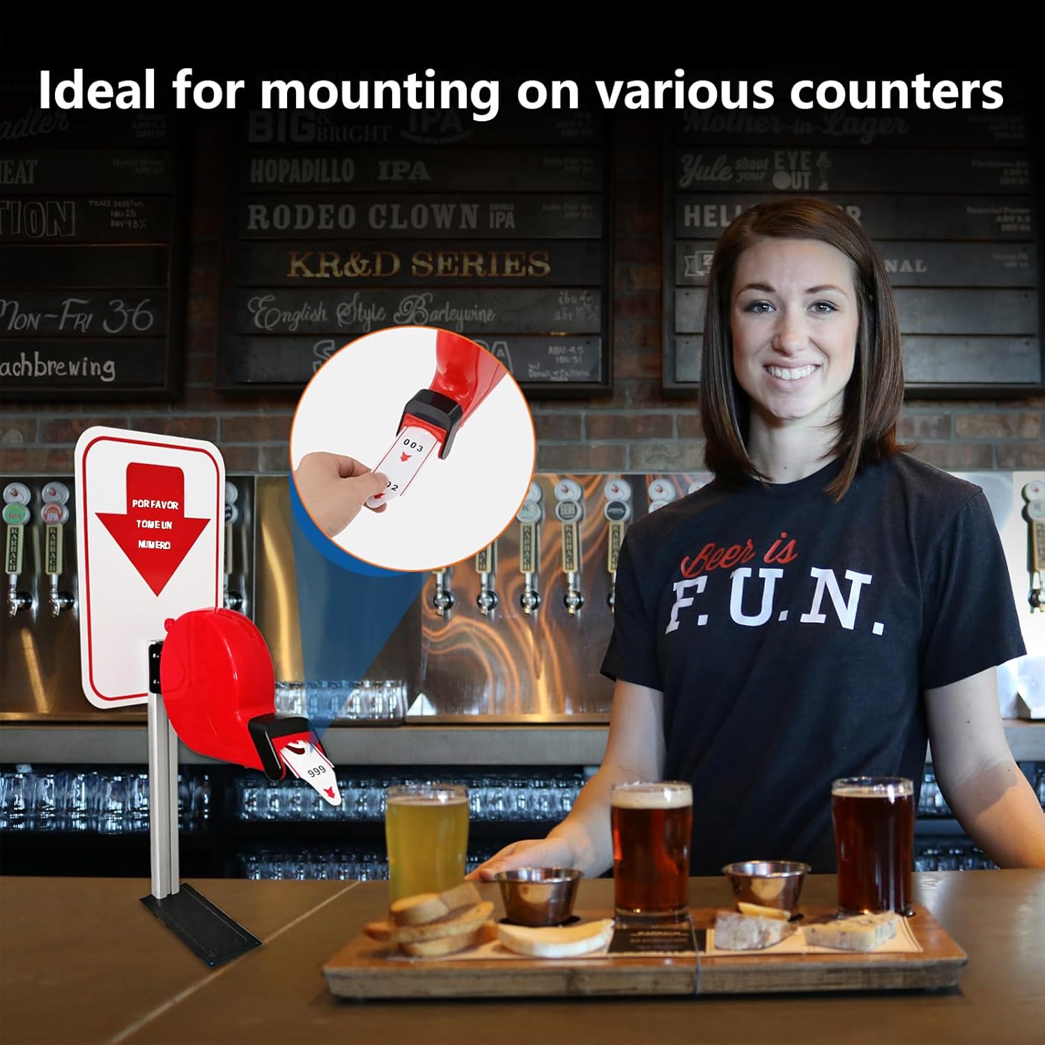 Take-A-Number System Ticket Dispenser with Counter Stand and 1 Roll 3 Digit Queue Ticket 2000 Tickets for Queue Call System (K-T-3-ES)