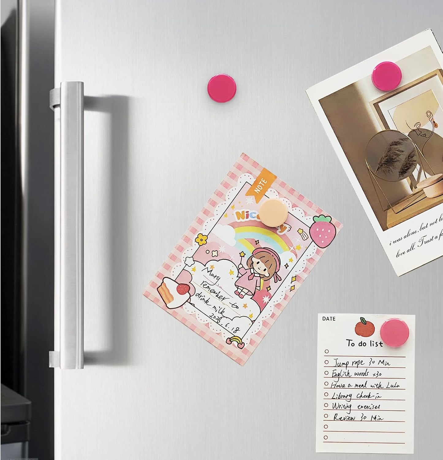 - 【Decorative magnets - perfect gift】 This small round magnets is colorful and eye-catching, gives your decoration a bright color and makes your life more exquisite. These white board magnets can not only decorate your home or office, but also help organize your clutter and create more space to make your environment cleaner and more attractive. These fridge magnet calendar also make a perfect gift for friends, loved ones, children and colleagues or teachers.