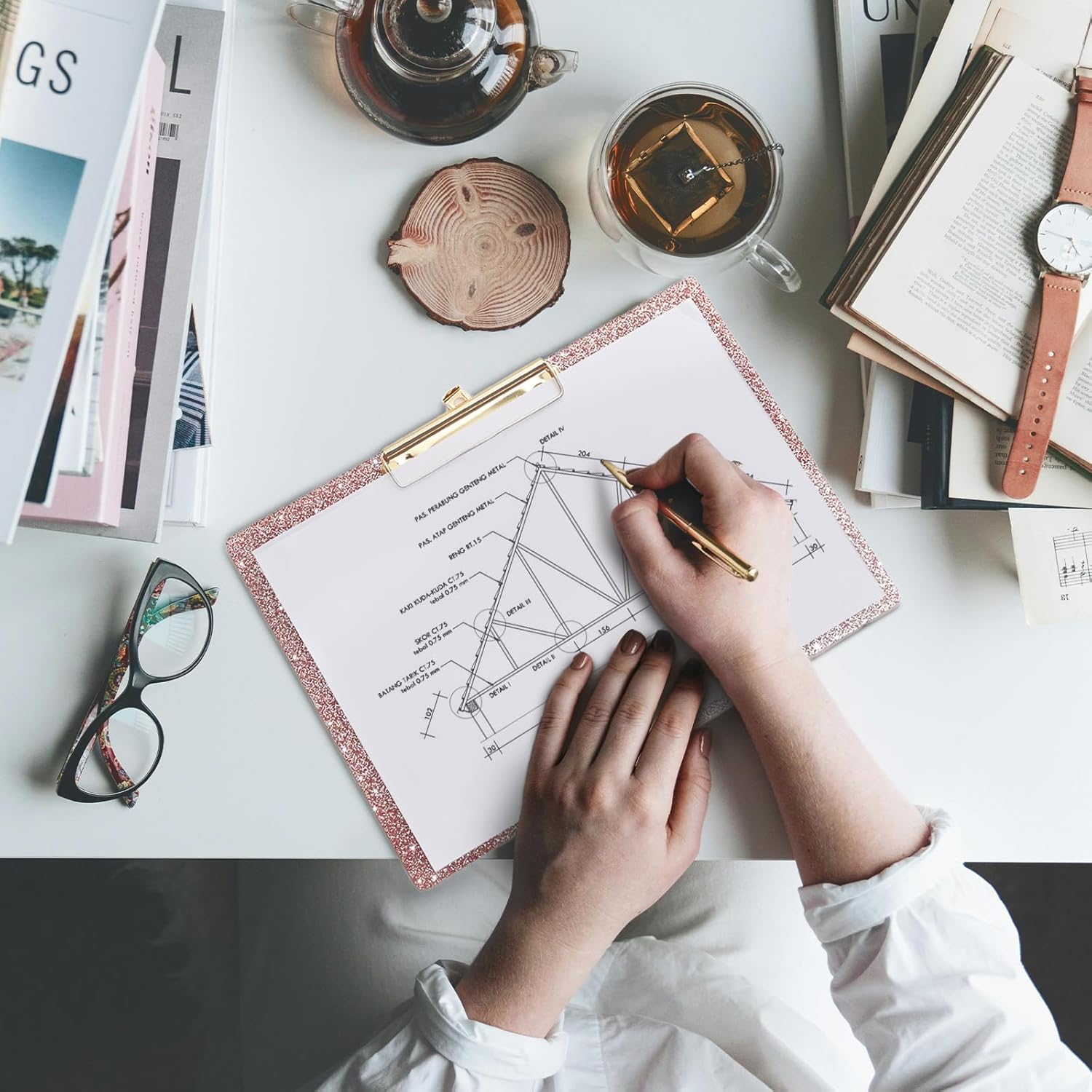 - ✨ STYLISH & ELEGANT - Showcase your impeccable taste with our Shiny rose gold glitter clipboard. Our clipboard is thick, transparent, and has a smooth surface and edges. The chic gold metal clip enhances the overall appearance of the clipboard, adding style and elegance. Working with our clipboard will leave you feeling inspired.