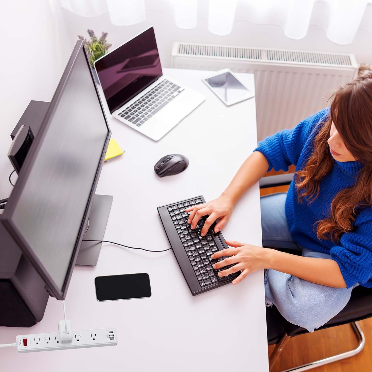 - 10 Feet Flat Plug Power cord with Cable Ties: 10 Ft Extension Cord makes it more flexible, Reusable Fastening Cable Ties Can tie up the unused cord and make it better organized. the Mounting hole at the back allows this wall mount power strip to be securely installed in various applications, such as wall mounts, floor mounts, workbenches, under counters & more.