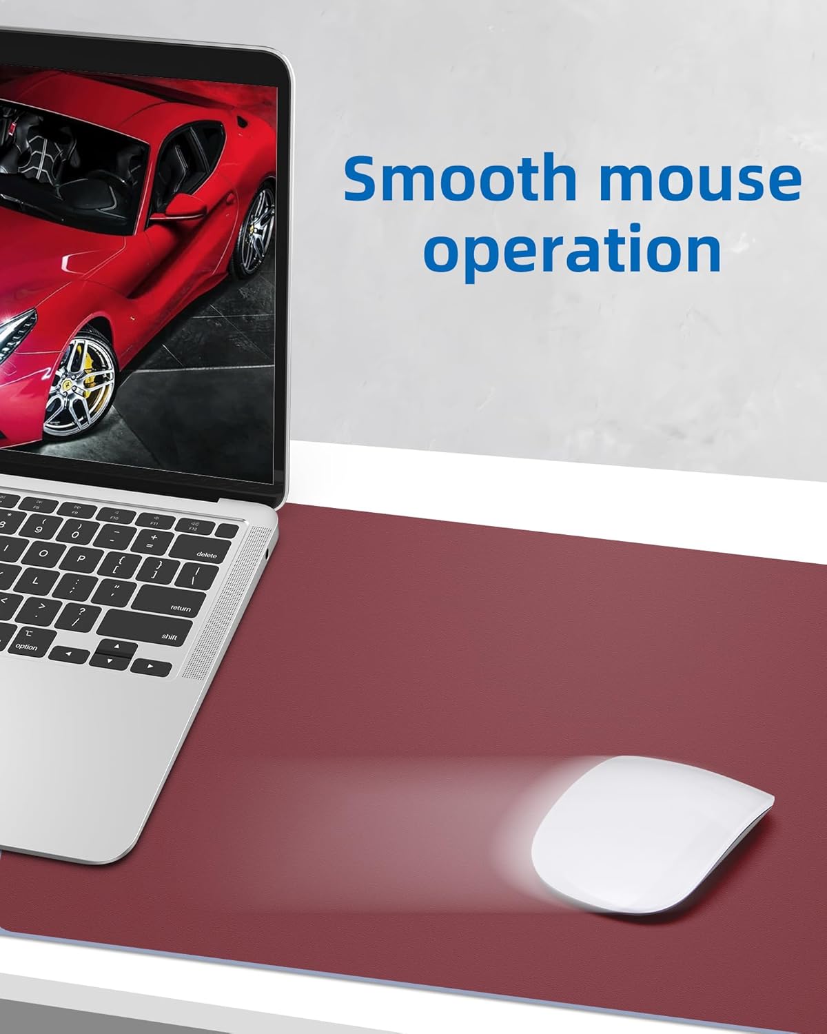 Leather Desk Pad Protector,Mouse Pad,Office Desk Mat, Non-Slip PU Leather Desk Blotter,Large Desk mat,Waterproof Keyboard mat for Office/Home/Decor (Burgundy Red,35" x 17")