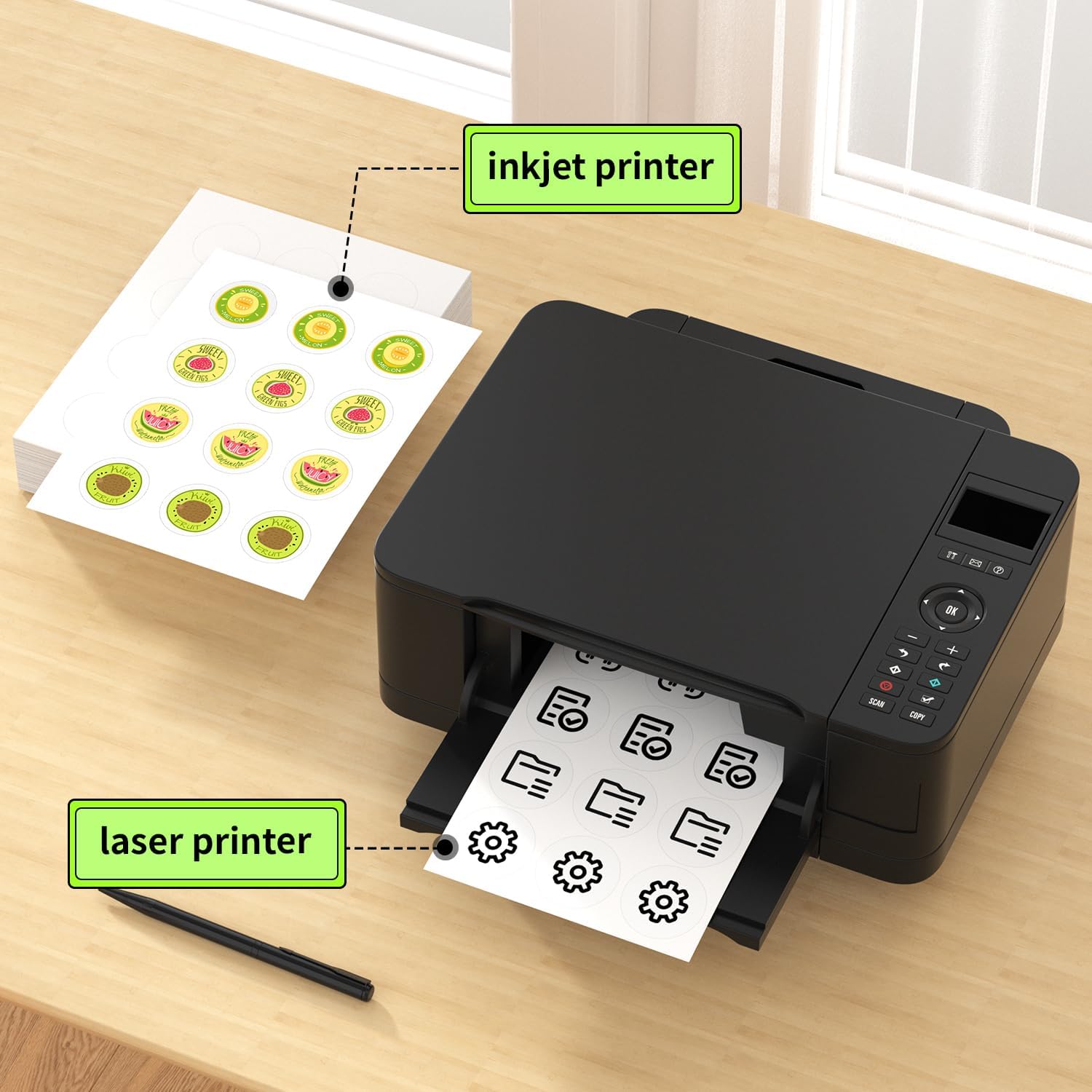 Methdic 2" Diameter High Visibility Printable Round Labels,Matte White,360 Customizable Blank Stickers