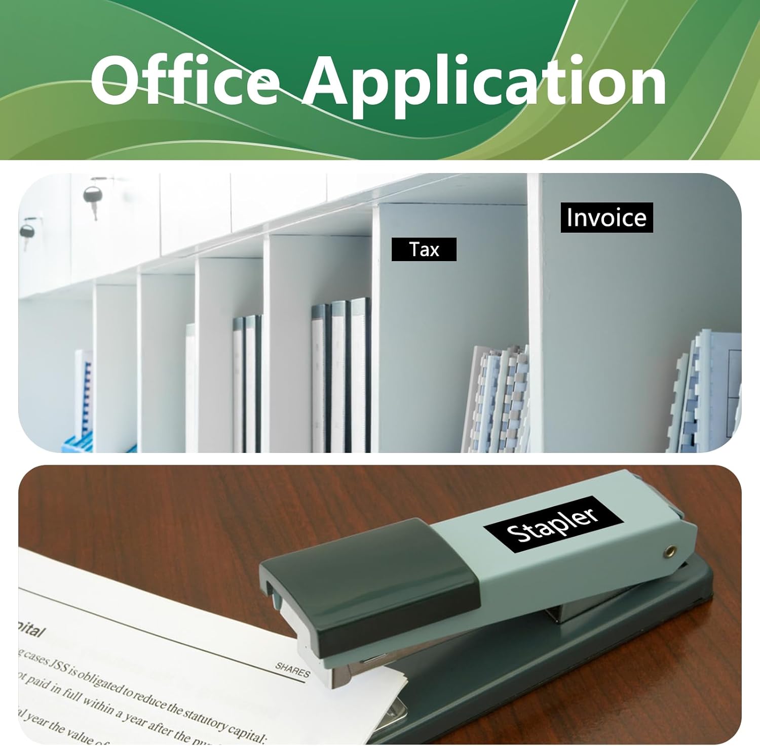 - Applications: TZe345 is suitable for home, school, office, warehouse, etc. It can be used to label files, folders, plug sockets, books, spice jars and more