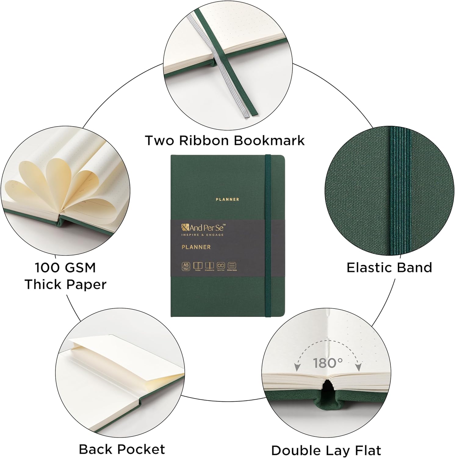 And Per Se Undated Academic Planner, A5 Weekly Calendar Planner, 72 Weeks Hardcover to Track Goals, Teacher Student Planning Book with Monthly Tab Stickers & Back Pocket (Green)