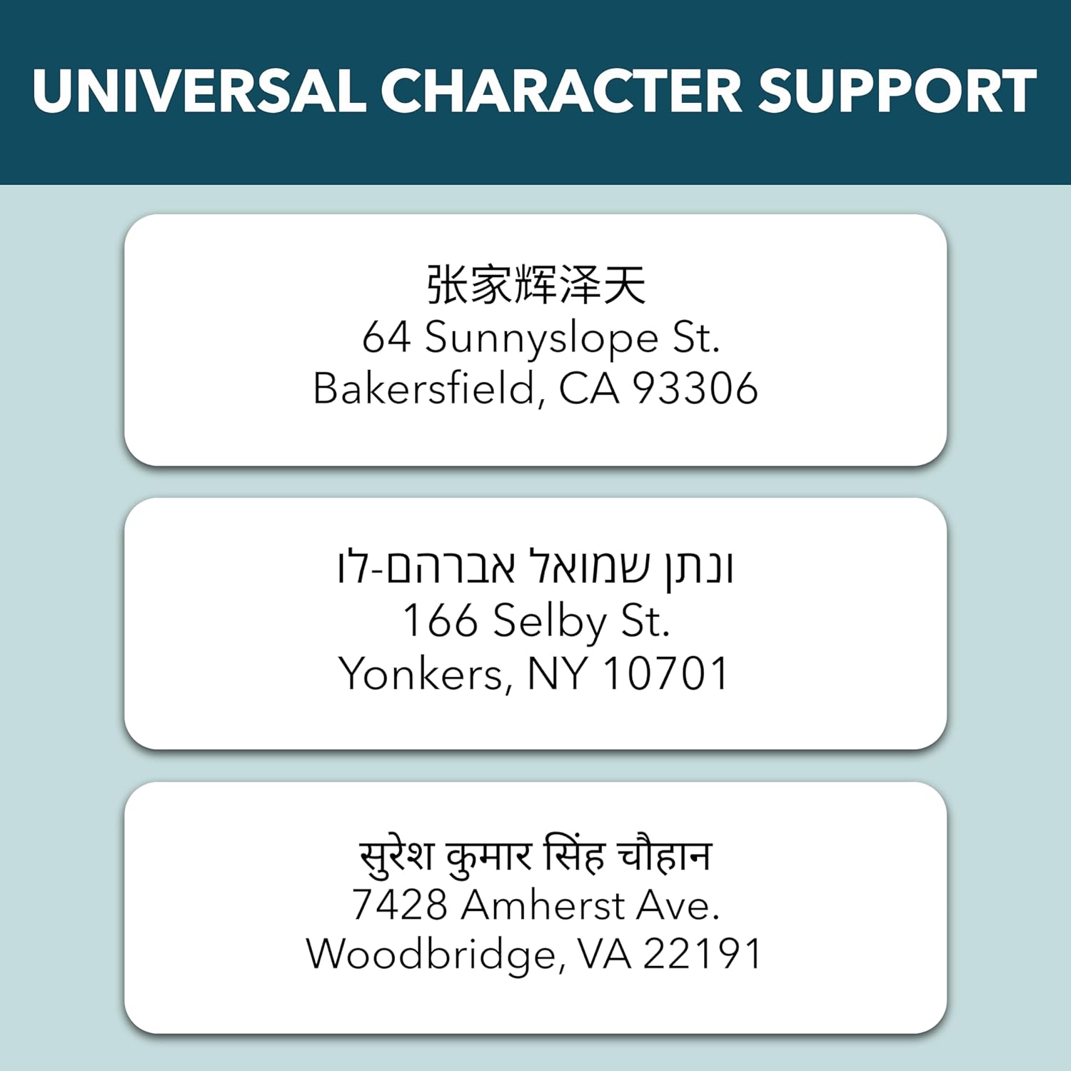 - UNIVERSAL CHARACTER SUPPORT - We support all foreign and English characters, allowing you to personalize each label with your unique name and address, no matter the language.