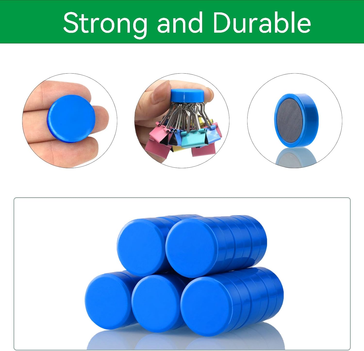 Fridge Magnets, 40 Pcs Heavy Duty Round Magnets for Whiteboard, Fridge, Locker, Office, Classroom - Blue