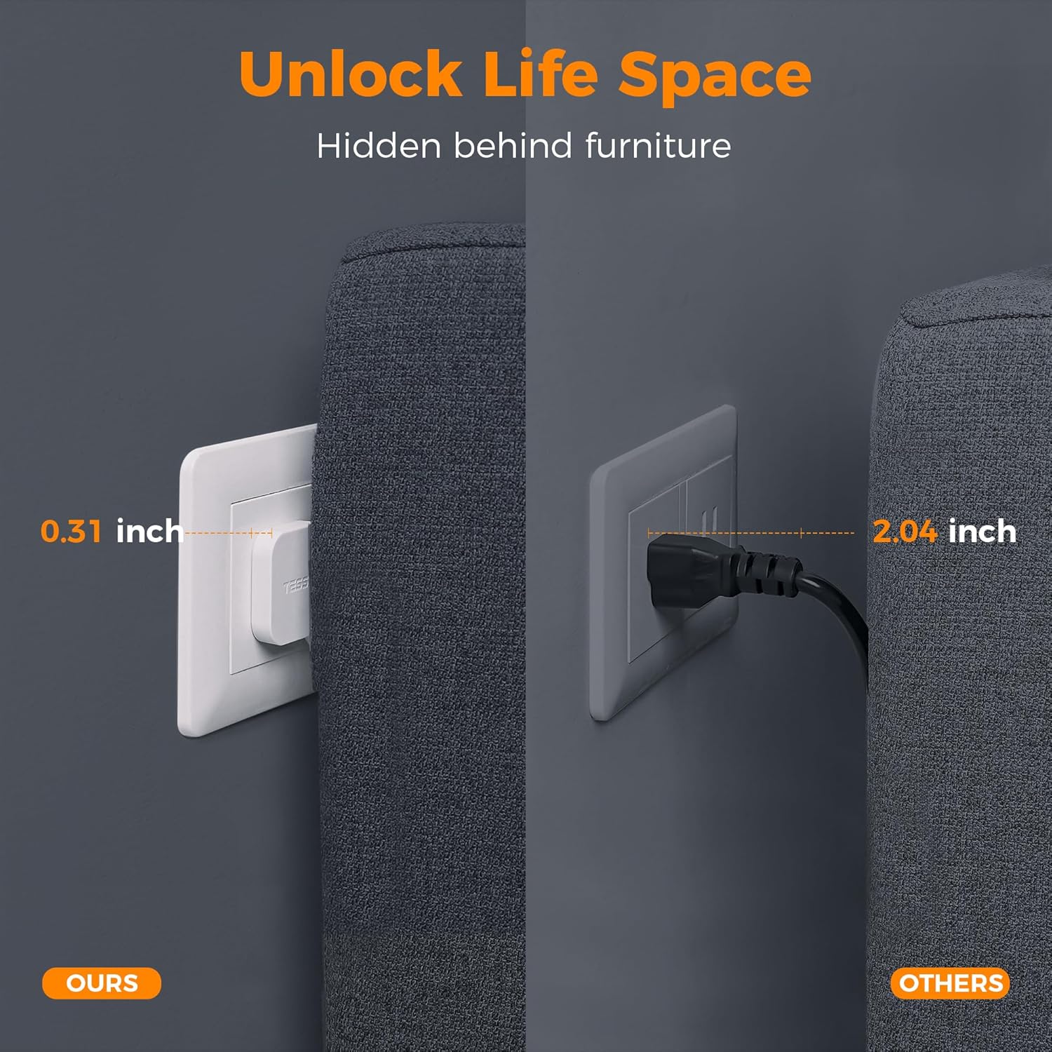 - Space Saving Design: 4-side compact design power strip tower surge protector takes up little space on your desk, cleans various cords and create a neat and tidy space; Stable base with 4 rubber feet at the bottom, efficiently keeps this extension cord 10 feet from slipping and sliding