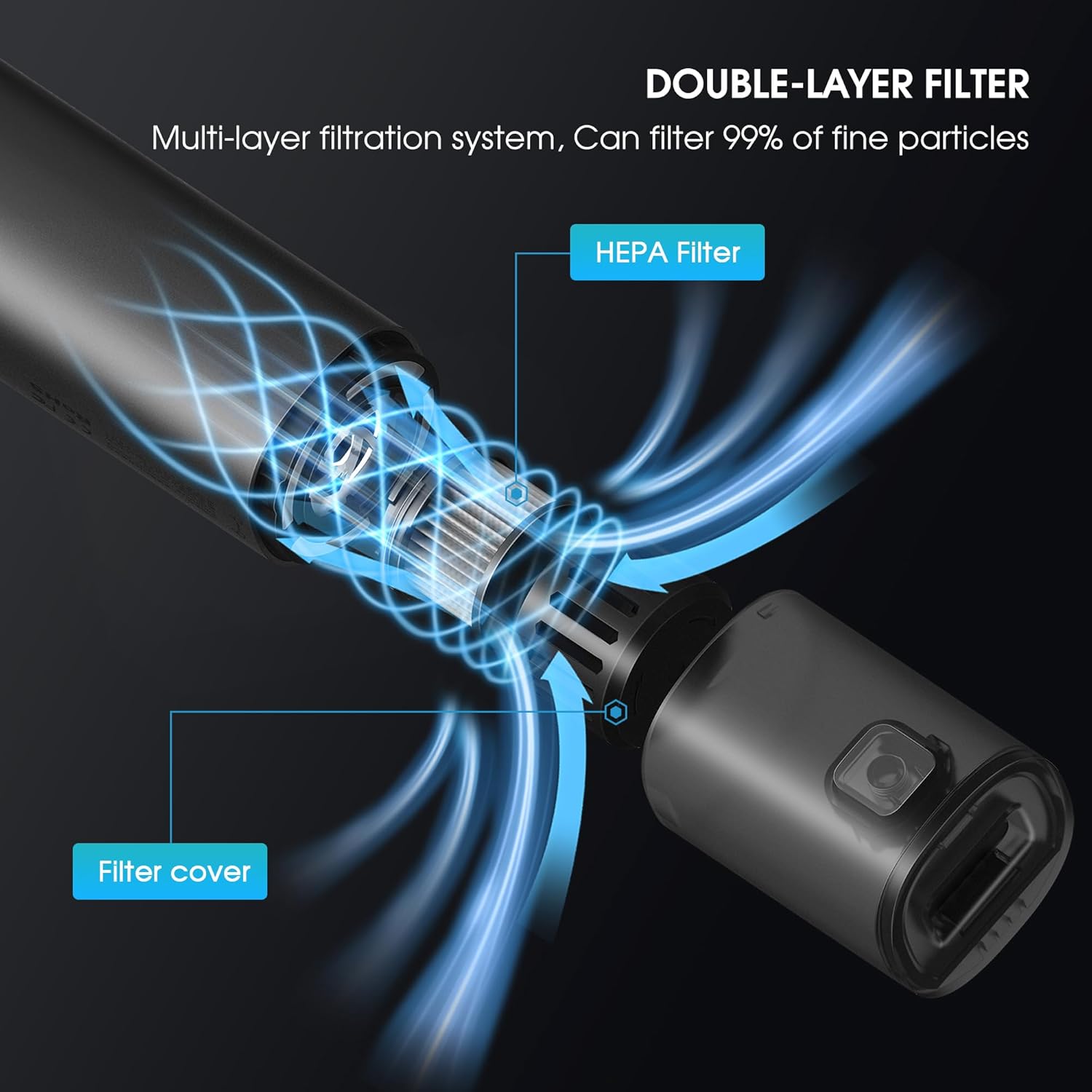 - 5-in-1 Multifunctional Handheld Vacuum: VSGO Handheld Vacuum Cleaner is not just a car vacuum cleaner, it also features other 4 functions in one machine: blowing, inflating, deflating and lighting, 5 functions combined in one machine. Equipped with a HEPA filter that can be cleaned with water and replaced when needed(Replacement filters will soon be available for purchase from the VSGO store).