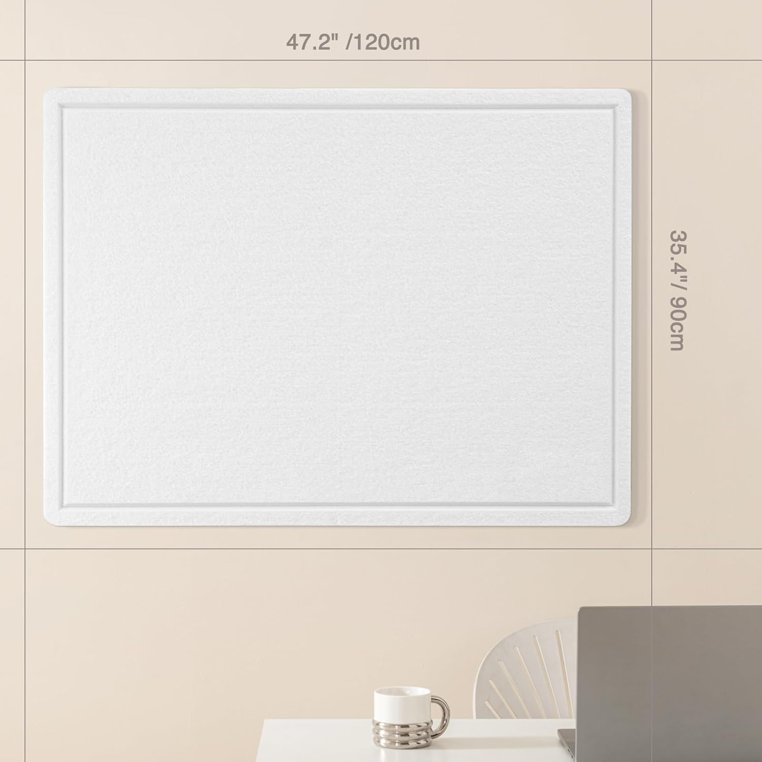 Large Bulletin Board - 48 x 36 Inches, Decorative Felt Pin Board for Wall - 4' x 3' Foldable Photo Display Board with Self-Adhesive Tape, Includes 20 Push Pins - White
