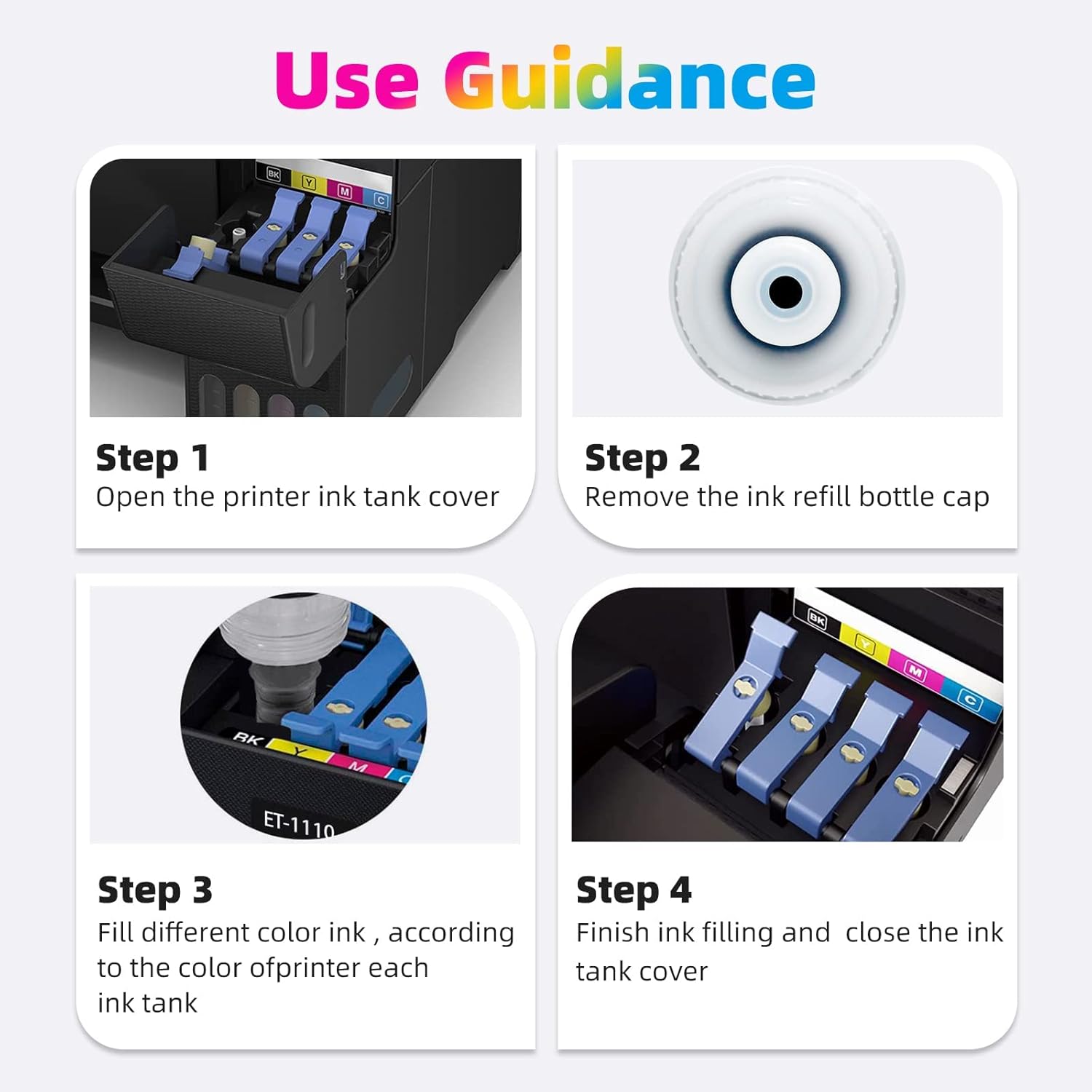 - 【Compatible Printers】: Compatible for ET-2700/ET-2750/ET-2760/ET-2850/ET-3700/ET-3710/ET-3750/ET-3760/ET-3800/ET-3830/ET-3843/ET-3850/ET-4750/ET-4760/ET-4850/ET-15000 ,WorkForce ST-2000/ST-3000/ST-4000,ST-C2100/ST-C4100 Printers.Please confirm your Printer Model to ensure that you purchase the correct ink bottle.