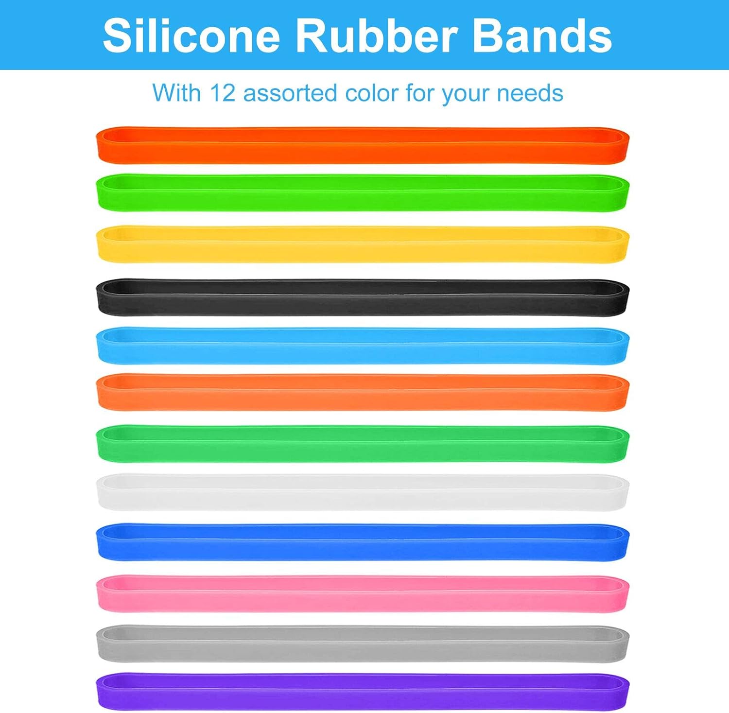 - Package includes: come with 24 pcs 12”, 24 pcs 8” and 124 pcs 5.5” silicone rubber bands, total 72 pieces; Each size have 12 different colors, white, black, red, yellow, green, blue, orange, fluorescent green, grey, pink, sky blue, purple, 2 pack for each color; These bright and cute colors bands will meet your different packing and decorating needs