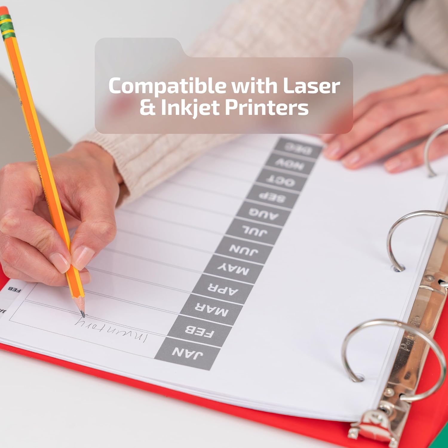 - 3-RING BINDER DIVIDERS: These printable tabs for binders are letter size (11" x 8 1/2") and designed to fit standard binder dimensions for seamless integration into your filing system.