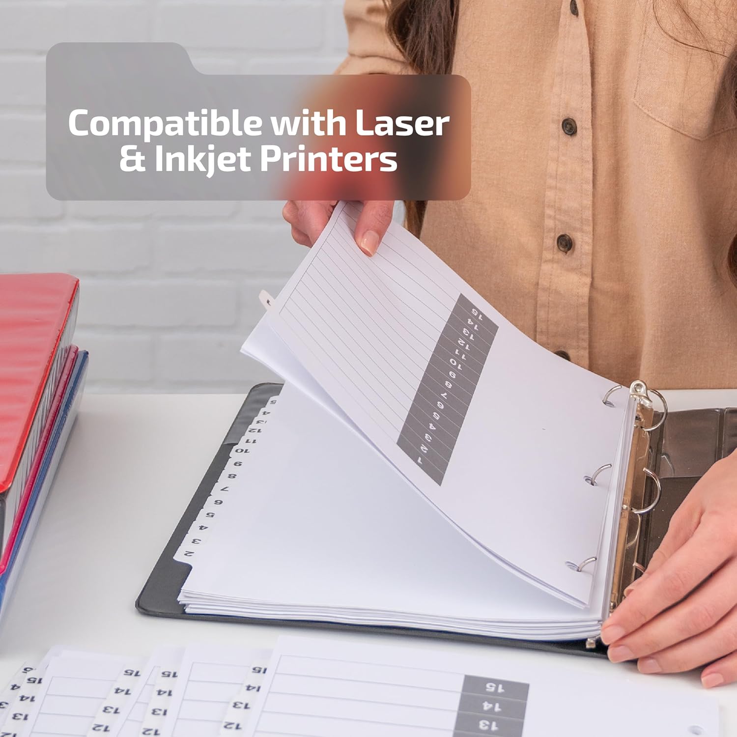 - 3-RING BINDER DIVIDERS: These printable tabs for binders are letter size (11" x 8 1/2") and designed to fit standard binder dimensions for seamless integration into your filing system.