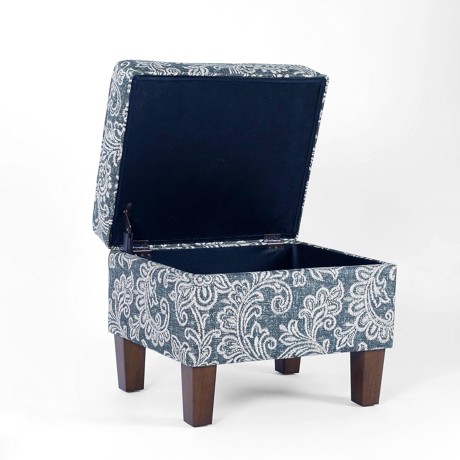 Home Decor | Dinah Collection Modern Storage Ottoman | Ottoman with Storage for Living Room & Bedroom(Blue Denim Jacobean Print)