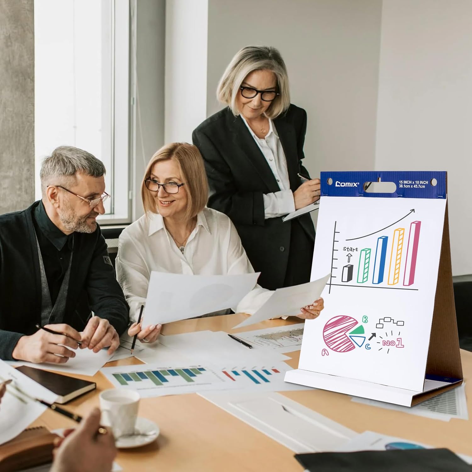 - 【Mini Size Tabletop Chart Paper】 Comix flip chart paper comes in a large size of 15 x 18 inches, 20 Sheets/Pad, 2 Pads/Pack, providing plenty of space for writing and drawing. And the anchor chart is portable and built-in easel stand for use on the go, and other respective occasions.
