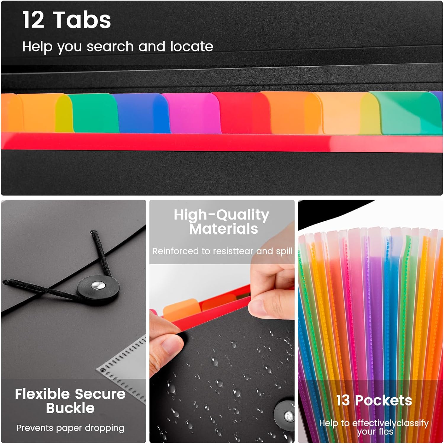 - 【EXPANDING FILE ORGANIZER】13-pocket accordion file folder ensures efficient organization by subject, securely storing all your essential documents for easy access