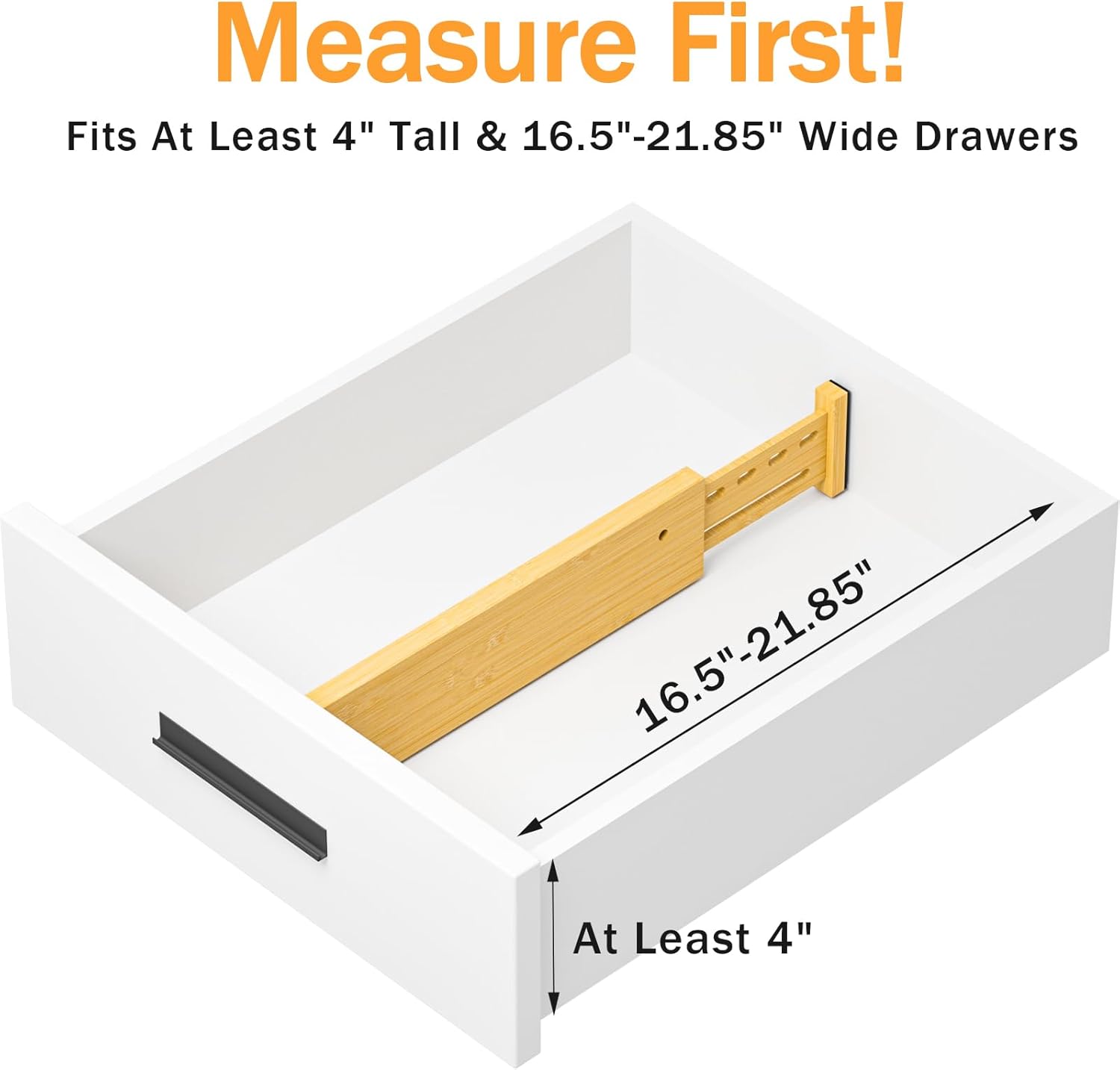 - EXPANDABLE SIZE TO FIT MORE DRAWERS: The drawer dividers are adjustable from 16.5'' to 21.85'' length, 4'' height.The dividers can be used vertically, horizontally or stacked to to meet various organizational needs.PLEASE MEASURE THE DRAWER SIZE BEFORE PURCHASE!