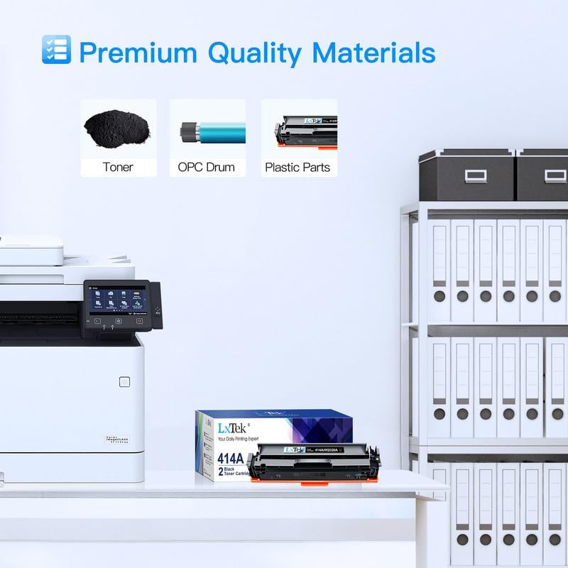- 【414A Black With Chip】: LxTek Compatible with HP 414A black toner cartridge are already installed with chips, no need to transfer original 414A black or 414X black toner cartridges chip to them.