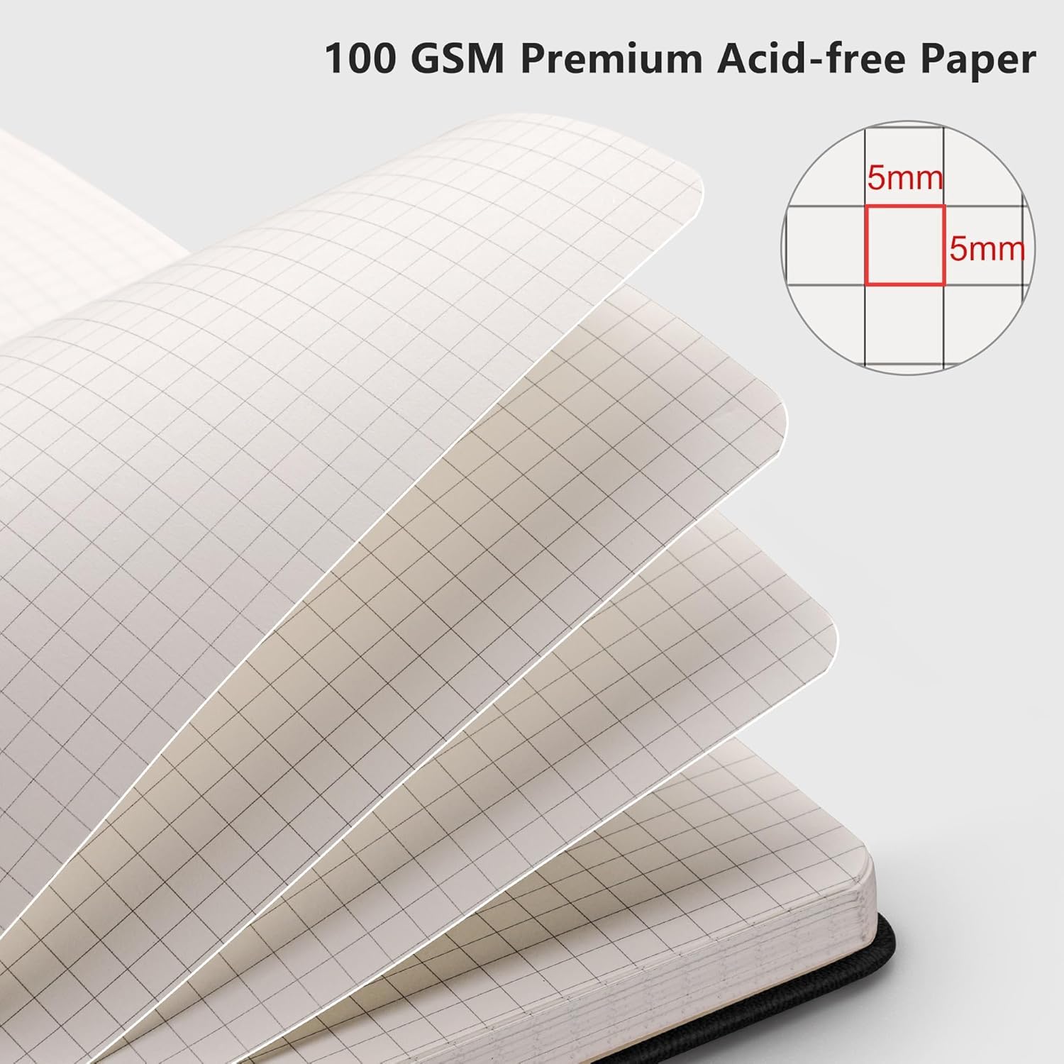 - 100 GSM PREMIUM PAPER: 100 GSM paper is thicker & sturdier, enduring the test of time. Perfect for jotting thoughts, ideas, or memories, our grid notebook keeps your words pristine. Use most pens, pencils, or markers with no ghosting or bleed-through