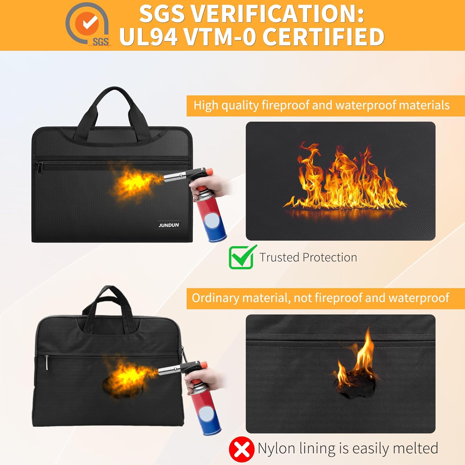 - HIGH-QUALITY MATERIALS: Safeguard your important papers with our fireproof accordion file organizer.Crafted from triple-layered,non-irritating silicone-coated fiberglass,it endures temperatures up to 2500℉ and meets SGS Testing standards (UL94 VTM-0 Certified).Its water resistance ensures protection against unforeseen spills.Organize and access your documents effortlessly with our document organizer.Enhance your peace of mind with this essential protection