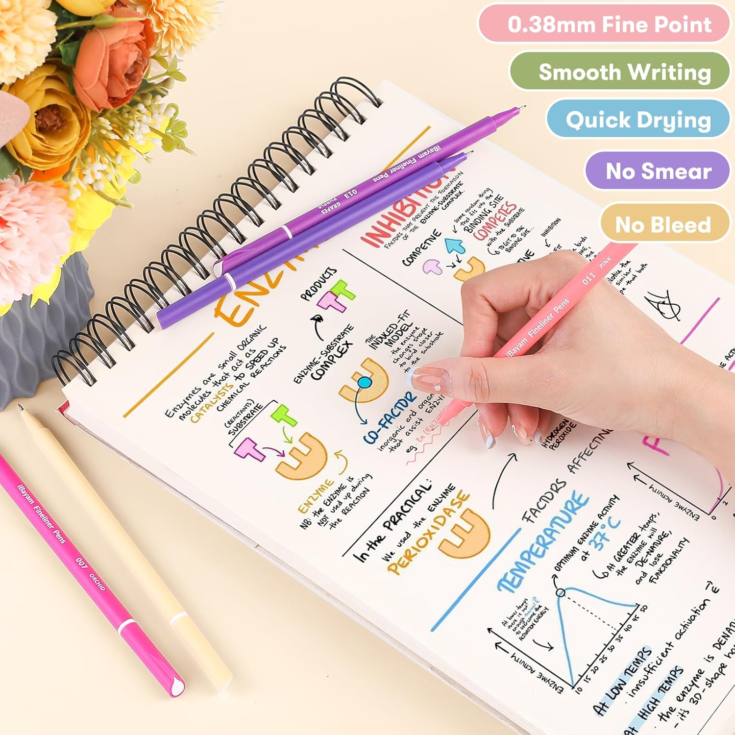 - FINE POINT PENS for planners, daily logs & creative lettering--0.4mm precision tips create crisp lines for organizing schedules or crafting elegant calligraphy. The ergonomic grip prevents hand fatigue during long study sessions or detailed art projects. Use them on calendars, habit trackers, or mixed-media journals – the quick-drying ink won’t smudge. A must-have for stationery lovers!