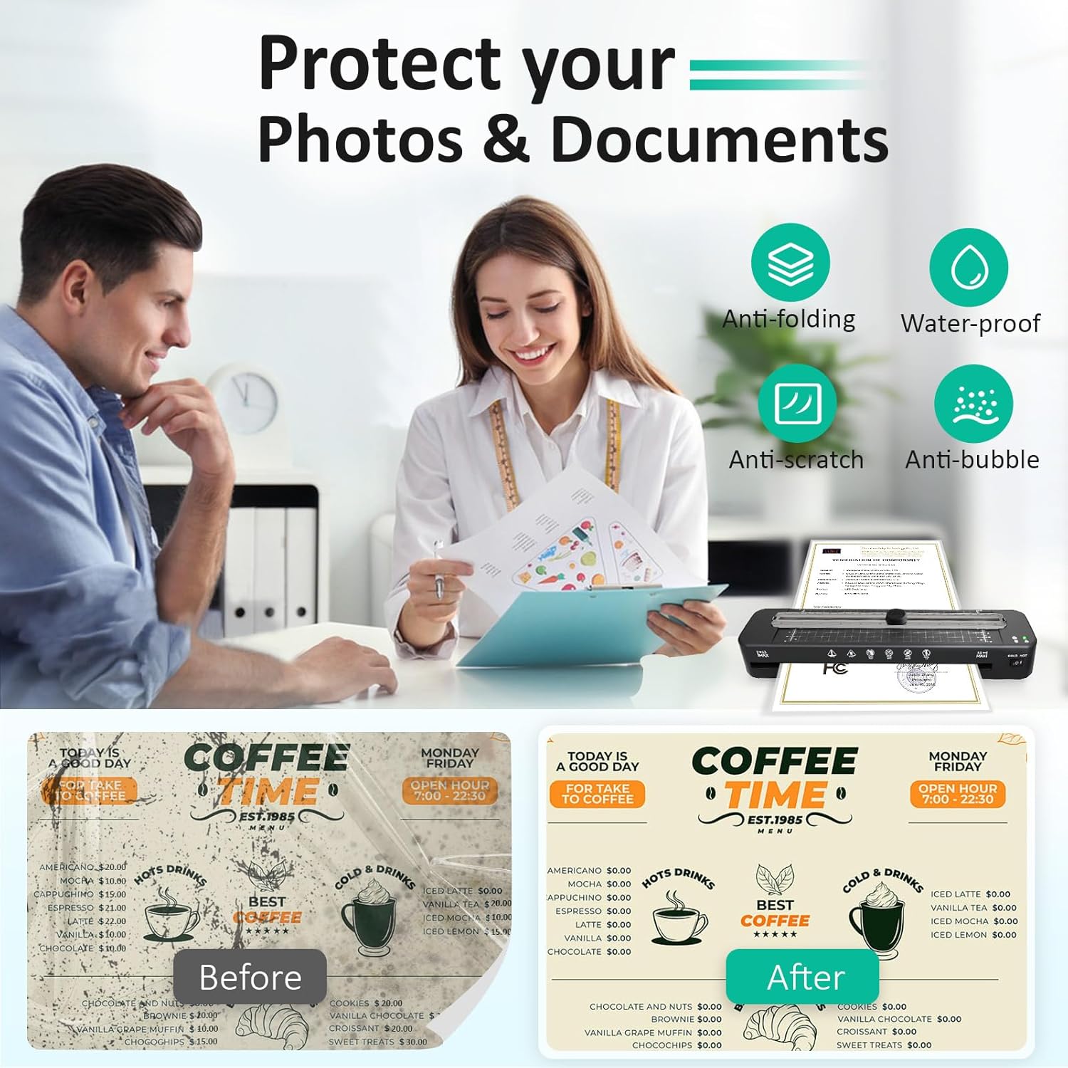 - Warm-Up for Fast Laminating: A3 laminator machine with laminating sheets heats up in just 95 seconds, allowing you to start laminating instantly. Meet different requirements with faster speed of 355mm/min, which can better improve your work efficiency. Take your projects to the next level and revolutionize your laminating experience.