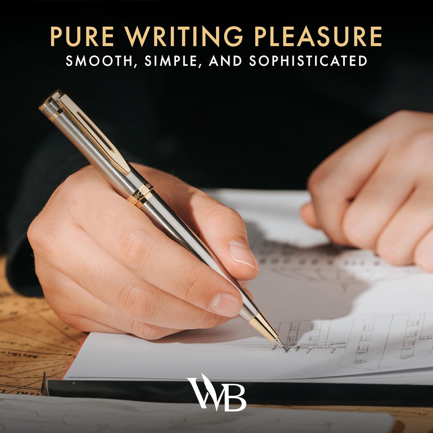 Wordsworth and Black Mechanical Pencil Graphite Lead- Stunning Luxury Metal Pencil, Silver Chrome 24K Gold Finish, 0.7mm Led, Best Gift Set for Men & Women, Professional Executive Office Pencils