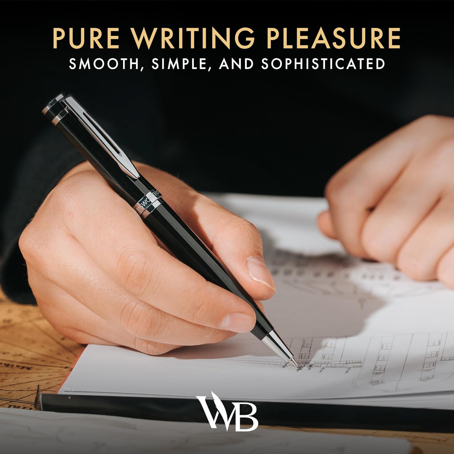 Wordsworth and Black Mechanical Pencil Graphite Lead- Stunning Luxury Metal Pencil, Black Lacquer Chrome Finish, 0.7mm Led, Best Gift Set for Men & Women, Professional Executive Office Pencils