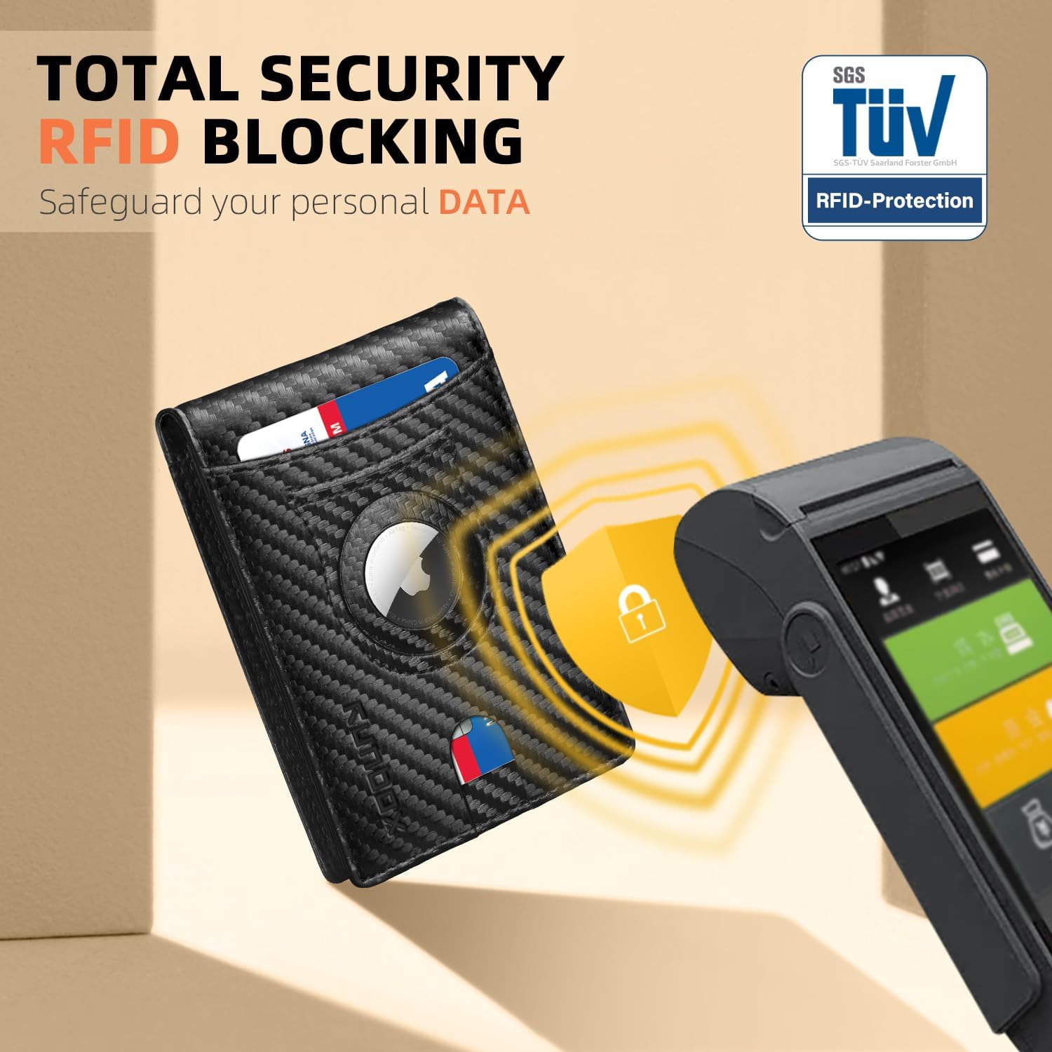 - RFID ANTI-THEFT FUNCTION - This wallet for AirTag boasts RFID blocking shield technology, safeguarding your personal and financial data against unauthorized scanning and identity theft. Enjoy peace of mind knowing that your information is safe and secure