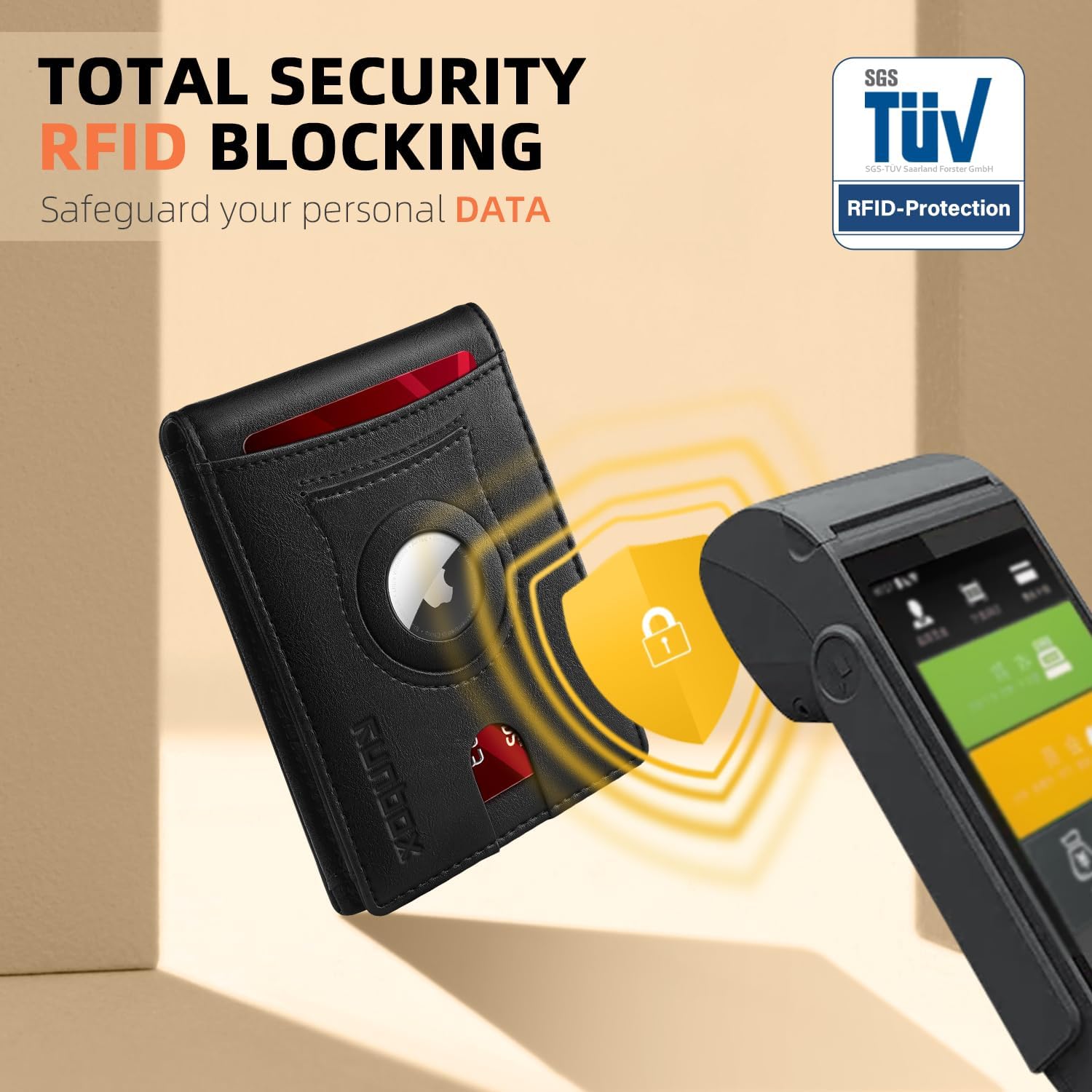 - RFID ANTI-THEFT FUNCTION - This wallet for AirTag boasts RFID blocking shield technology, safeguarding your personal and financial data against unauthorized scanning and identity theft. Enjoy peace of mind knowing that your information is safe and secure