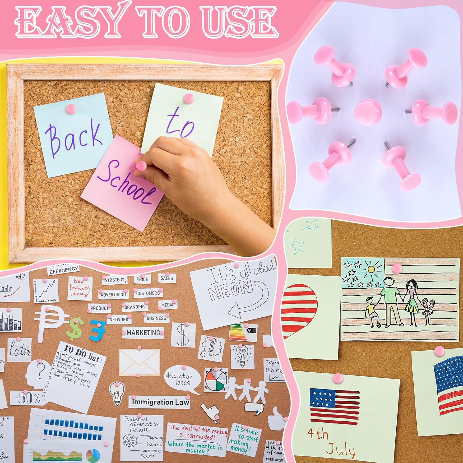 220 Count Pink Push Pins, Standard Plastic Head Steel Point Thumb Tacks Decorative Push Pins for Cork Board Wall Hanging