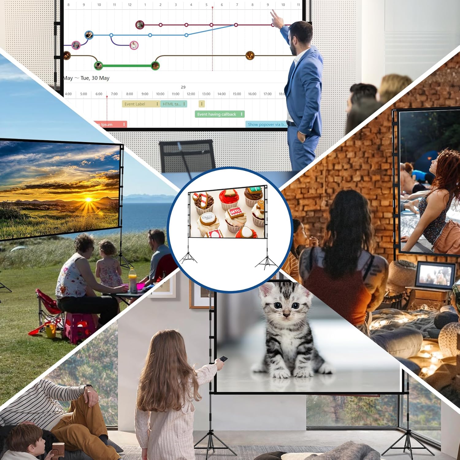 Projector Screen and Stand,120 inch lejiada Black Projection Screen with Stand Portable Foldable Movie Screen with Carry Bag for Indoor Outdoor Home Theater Backyard Cinema