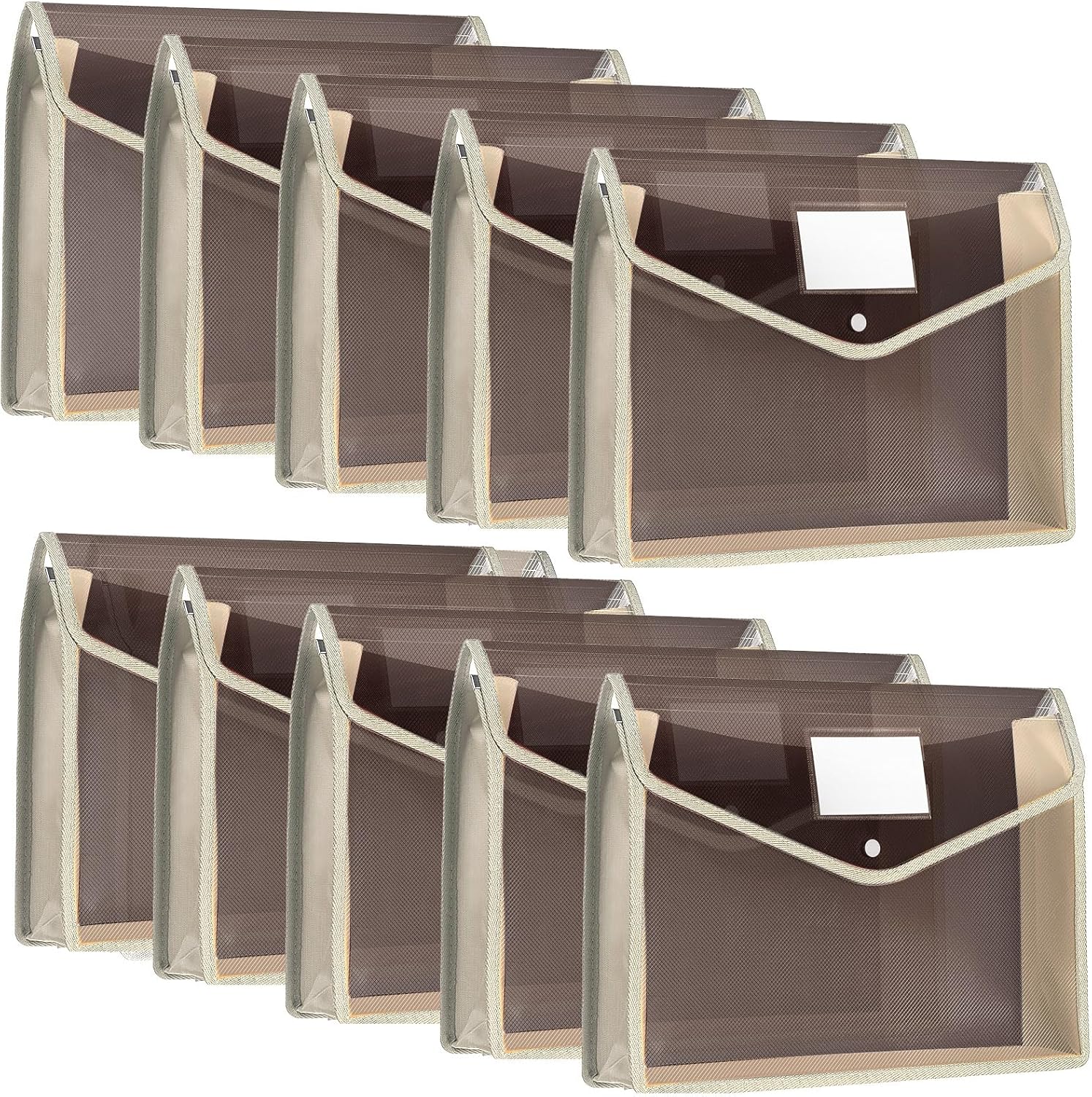 10 Pieces Plastic File Folders Envelope Expanding File Wallet Organizer Documents Folder with Snap Closure and Pocket, A4 Size Waterproof Transparent Pouch(Khaki,Horizontal)